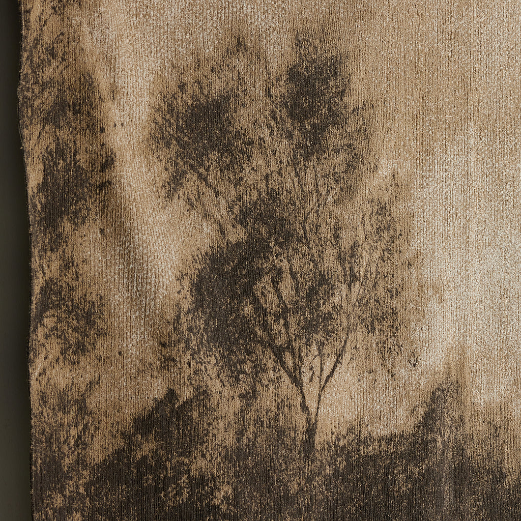 Inspired by the Texas Hill Country, Austin-based artist Aileen Fitzgerald paints atmospheric landscapes reminiscent of early Impressionism with a heavy emphasis on light. One of her most popular pieces is translated into a large-scale tapestry. Woven from a poly/cotton blend with thick oak veneer hanging hardware in a light oak finish. Handmade in Austin, Texas.