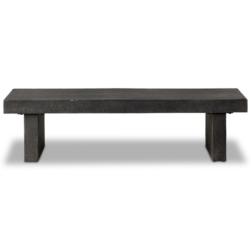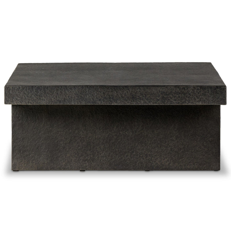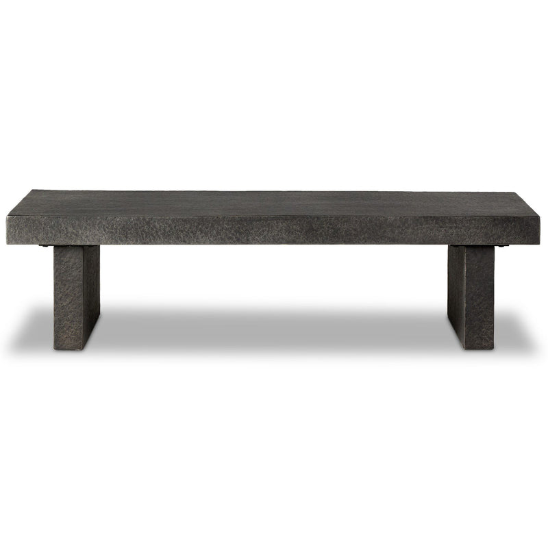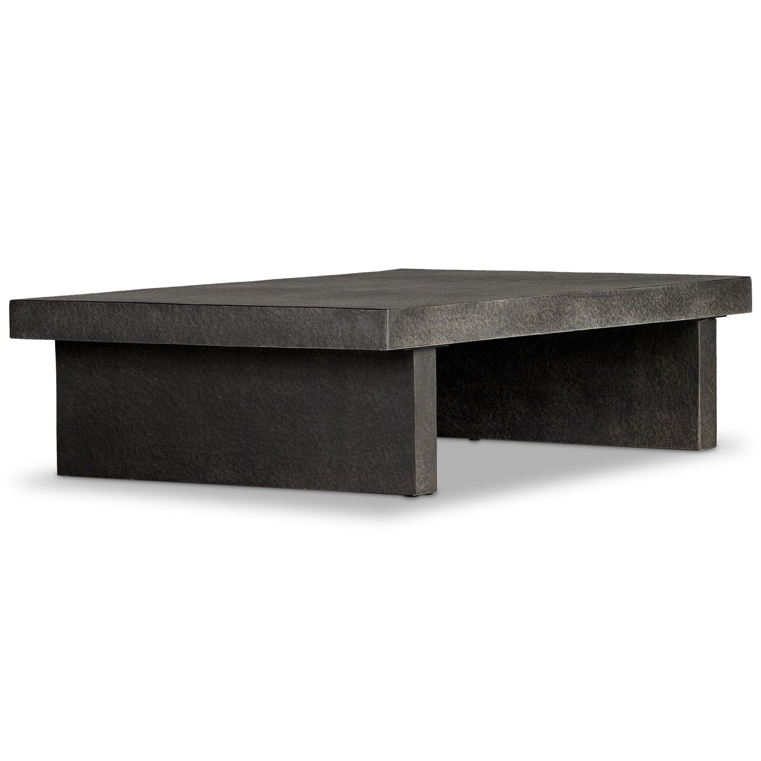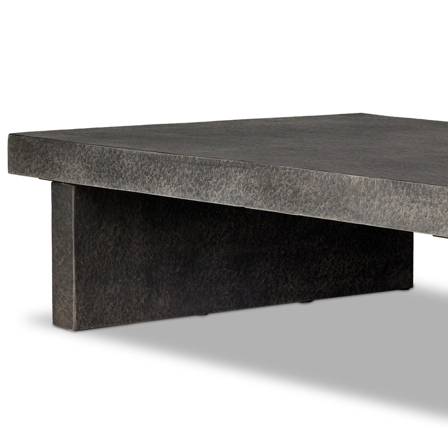 Moody and bold, distressed graphite concrete forms a monolithic coffee table that's suitable for indoor or outdoor spaces. Distinctive texturing elevates the streamlined frame, ideal for mixing and matching within your space.