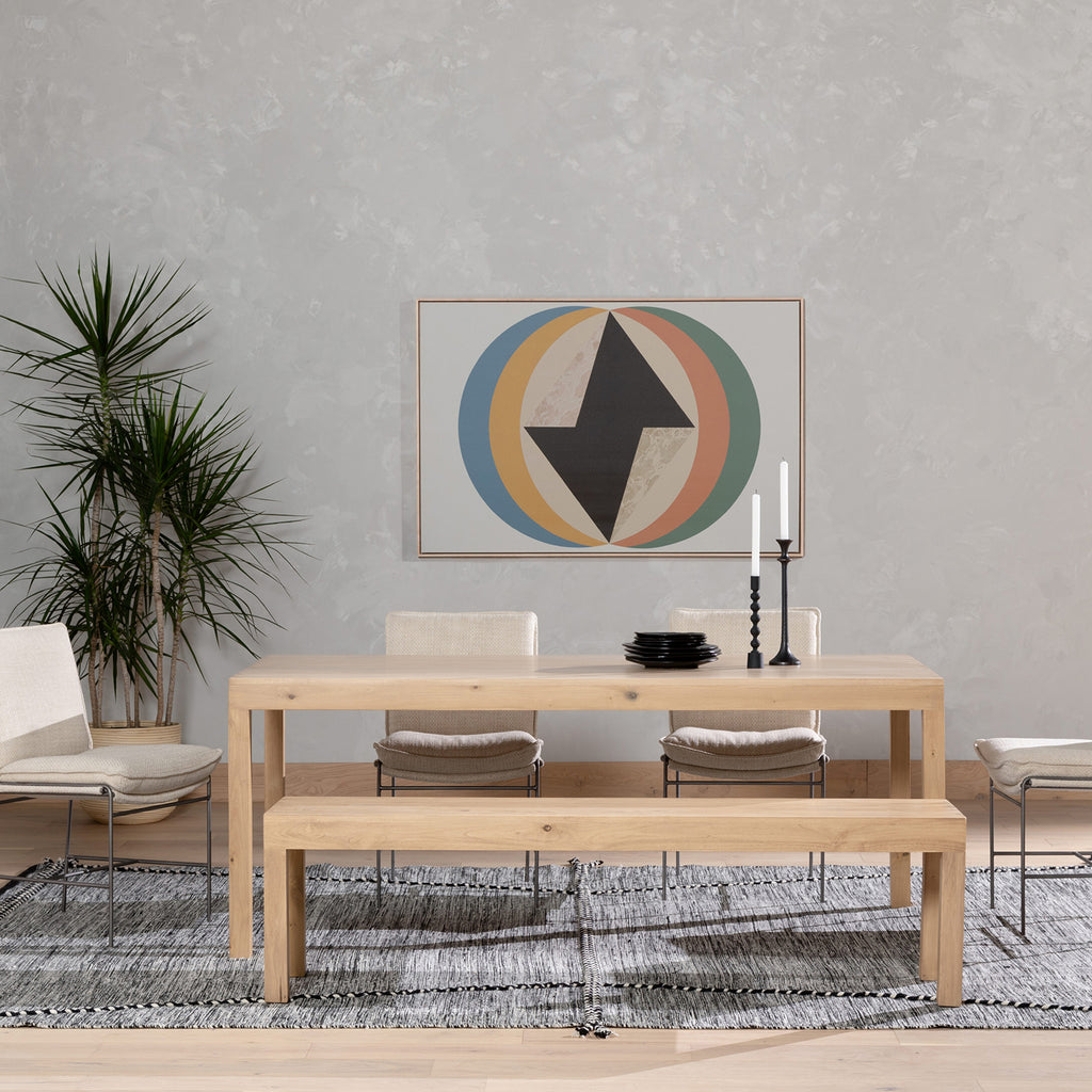 Beautifully simple in spirit. Solid dry-washed poplar forms a clean, Parsons-style dining table with dovetail joinery, for a fresh update to Shaker-inspired styling.
