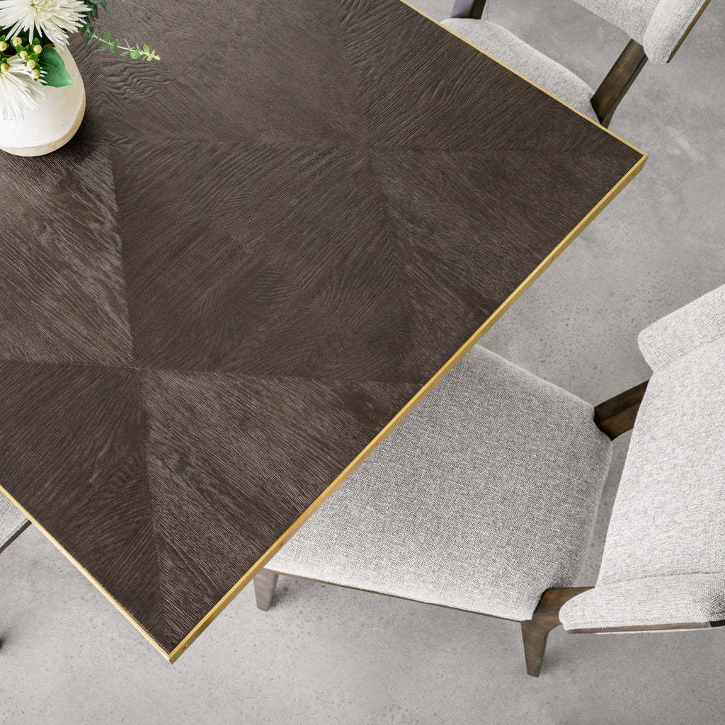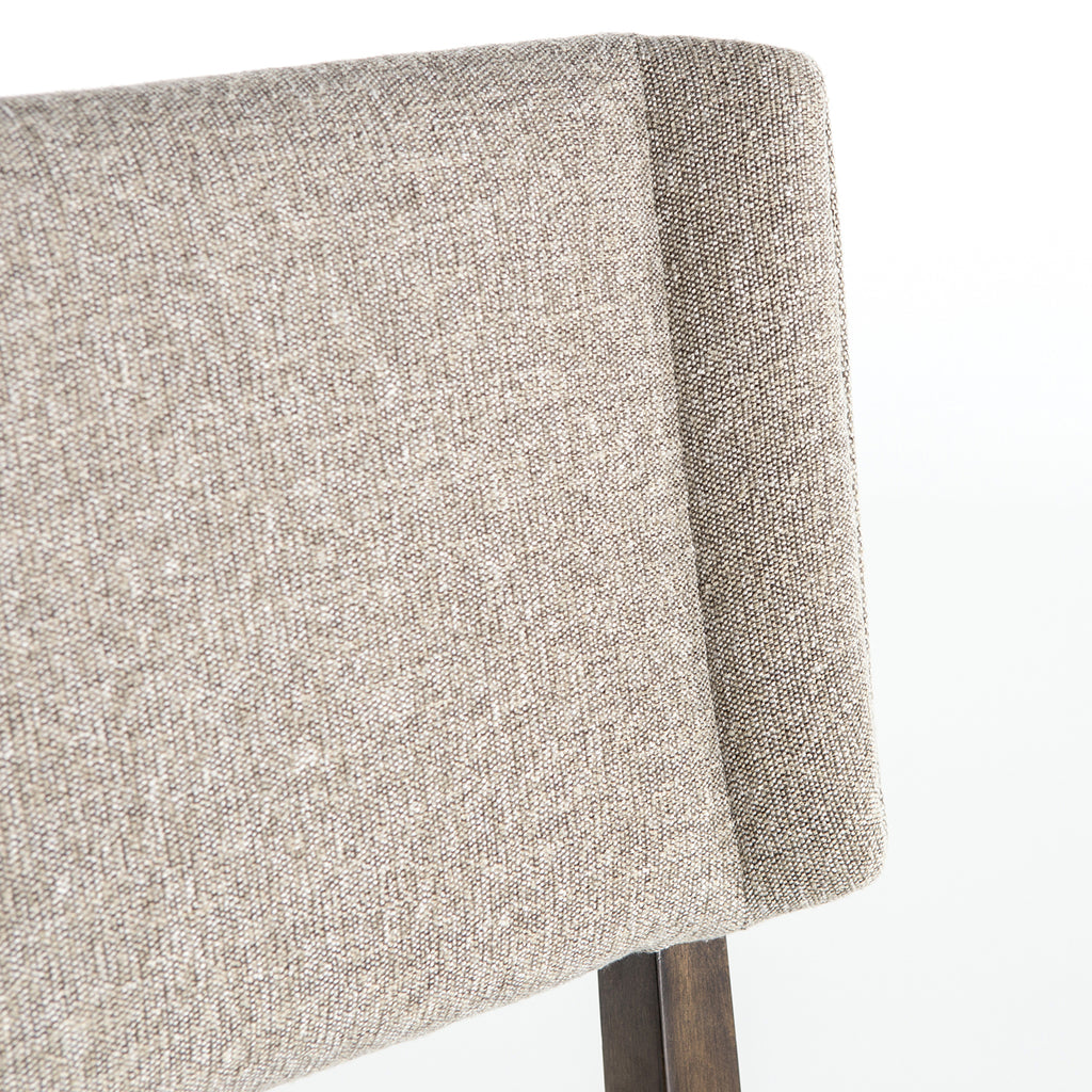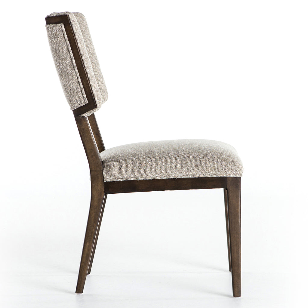 Bring the sensibility of a wing chair to the dining table. Angled wing, splayed stance, and exposed frame with sleekly upholstered seating.