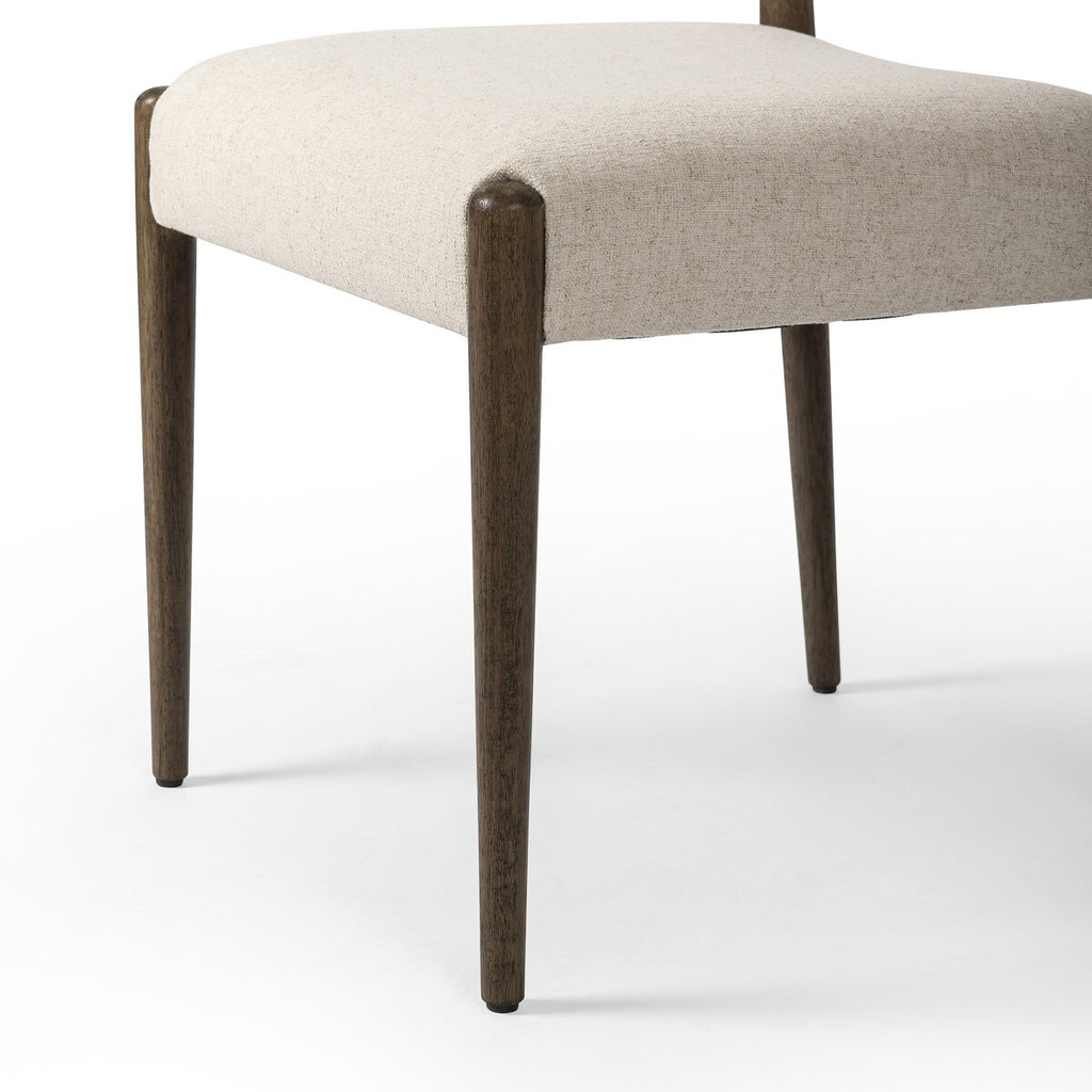 A midcentury-inspired piece brought to modern times. A supportive, sling-style back and seat cushion are upholstered.