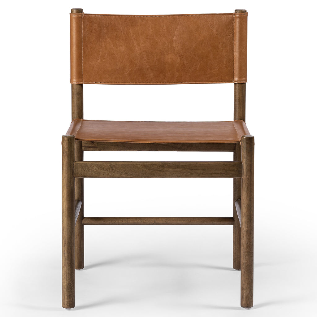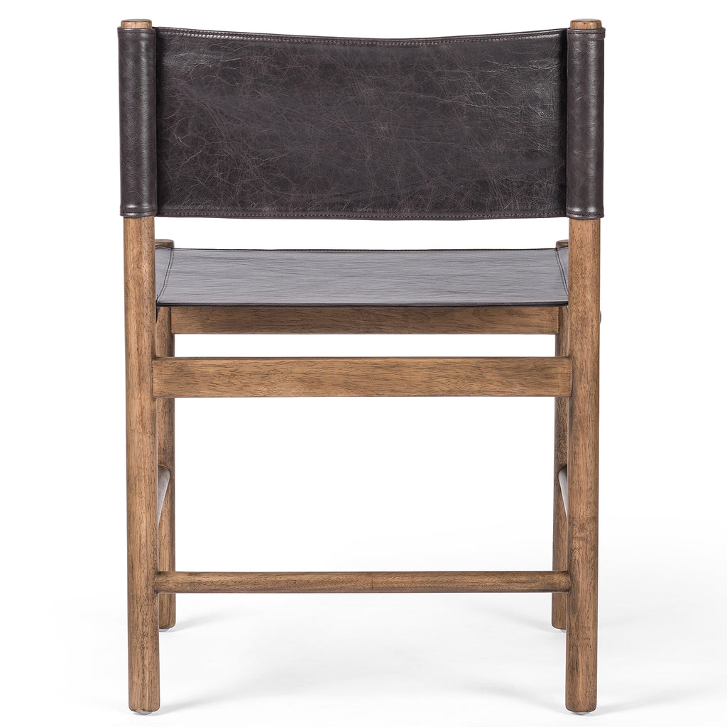 Solid parawood forms a simple, vintage-inspired frame for sling-style seating of black top-grain leather exclusive to Four Hands.