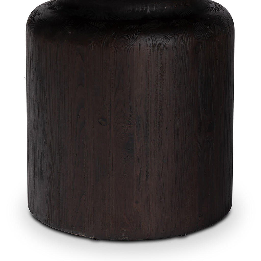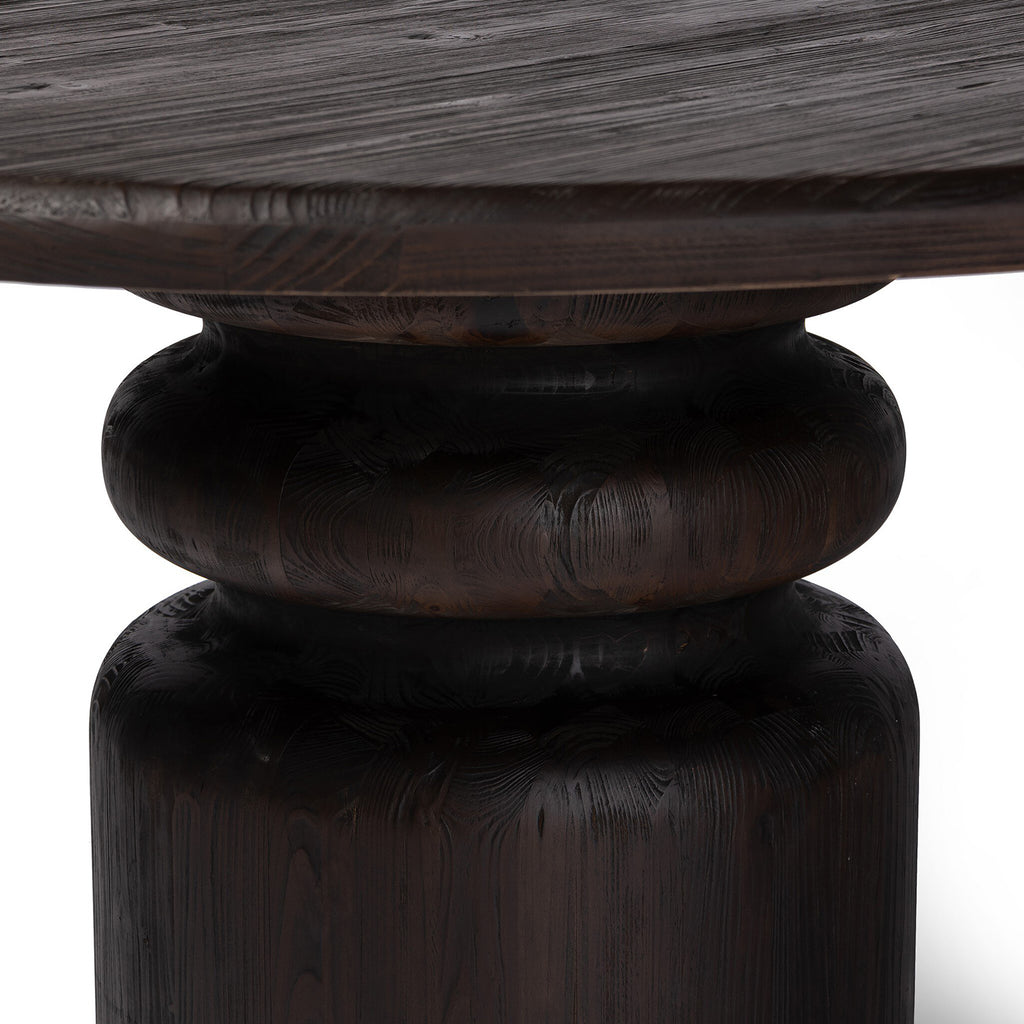 Solid pine pairs with a burnt finish for a warm, antiqued look, while a pedestal-style base and thoughtful detailing update the classic turn-shaped table.