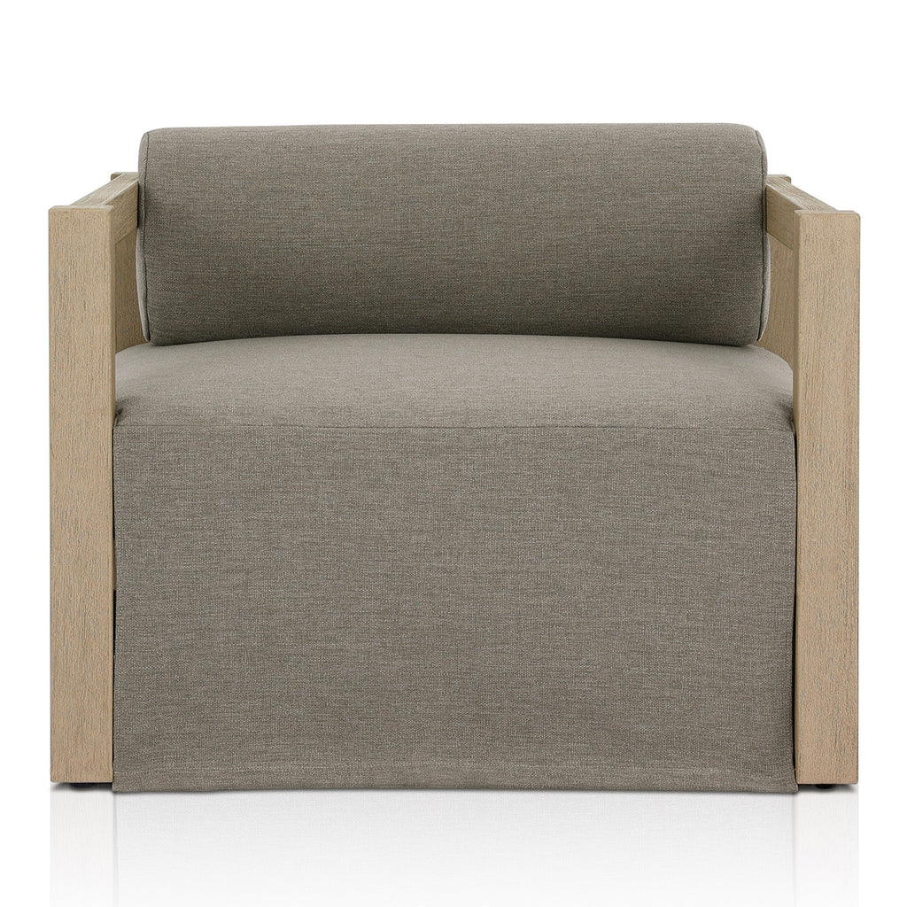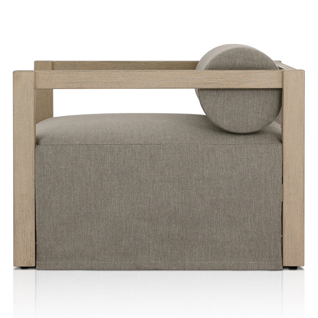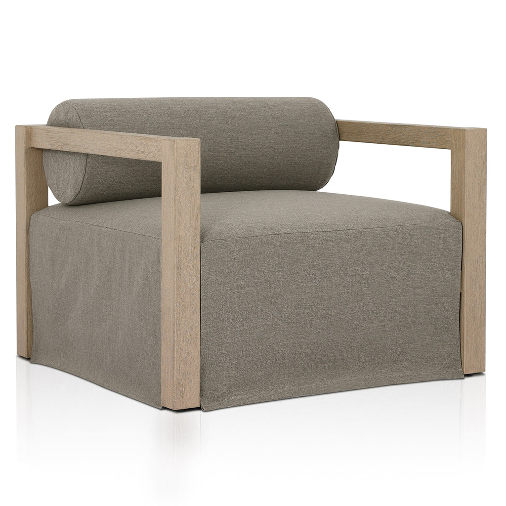 A soft, durable slipcover brings a complementary casual and laid-back look to structured framing of FSC®-certified teak. A bolster back cushion offers support and comfort in this outdoor armchair. Made in Italy, this sustainably made fabric is antimicrobial and highly resistant to sunlight, abrasion and chlorine. Cover or store indoors during inclement weather and when not in use.