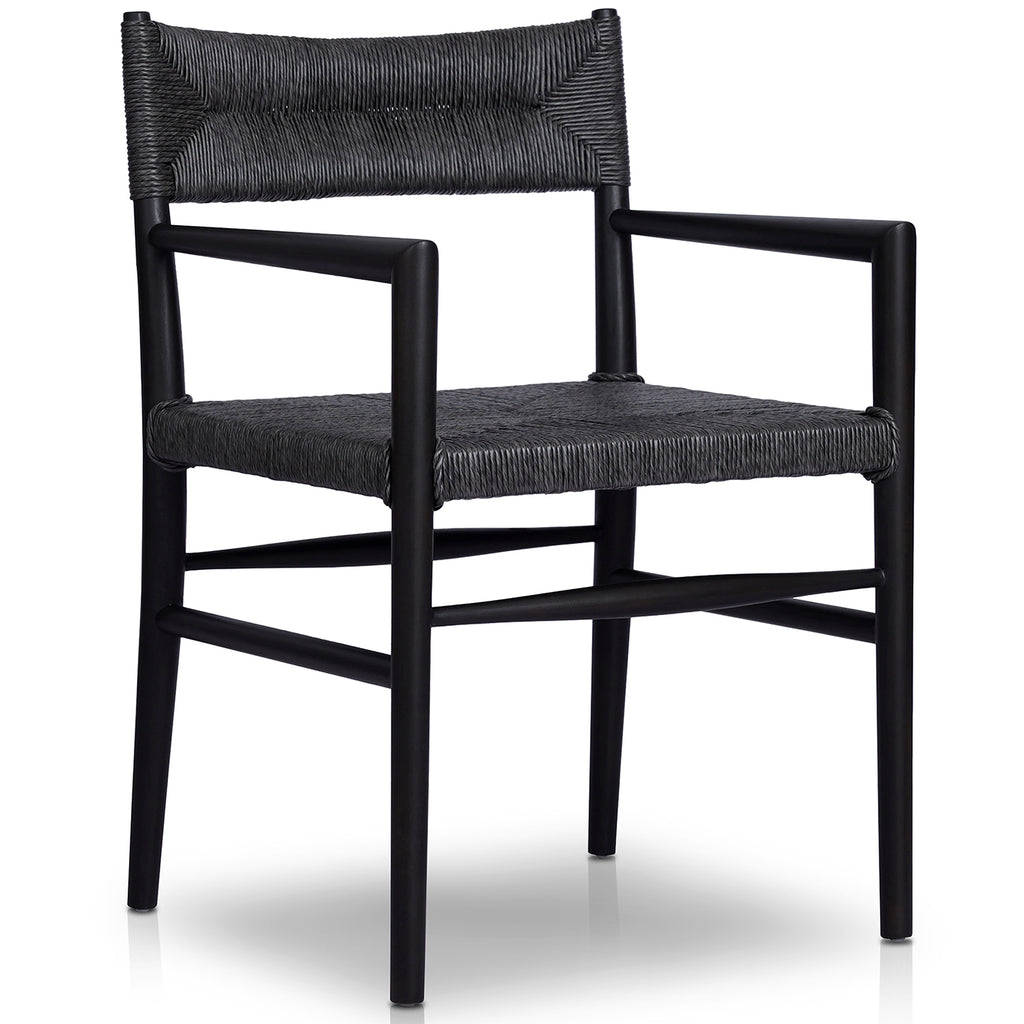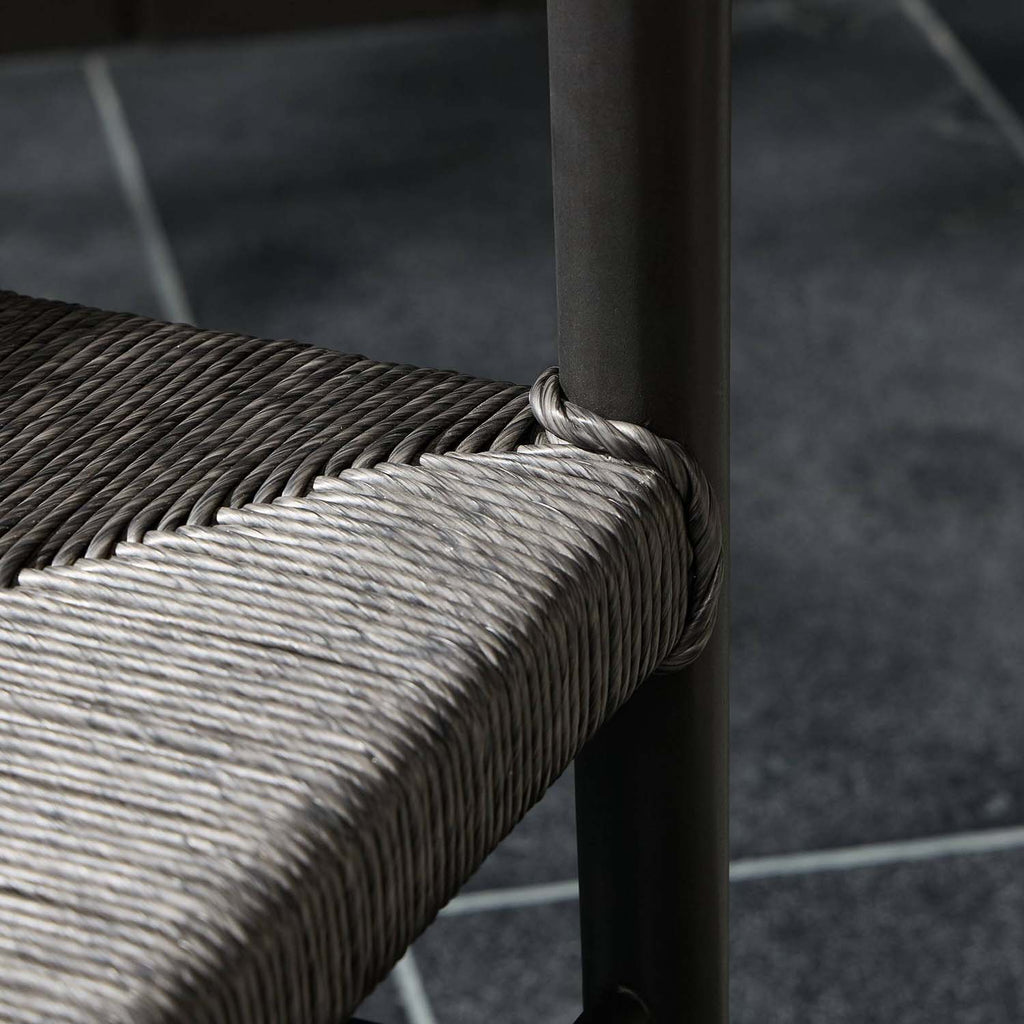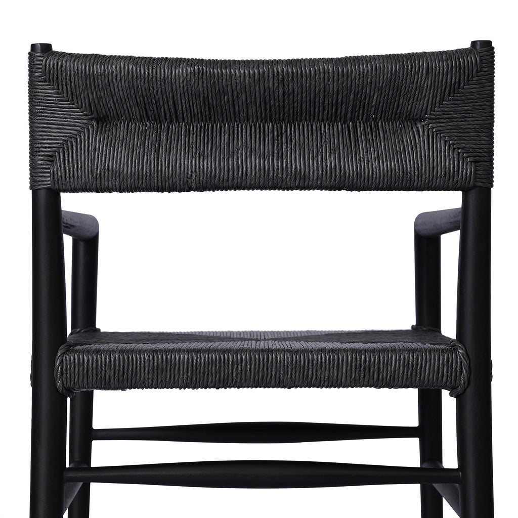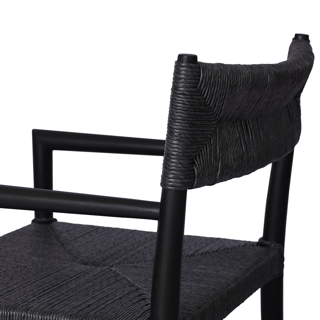 With a classic black finish, tapered teak frames this woven all-weather wicker outdoor dining armchair. Cover or store in Doors during inclement weather and when not in use.