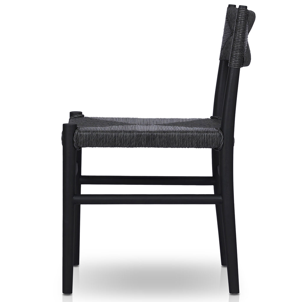 Slim, tapered teak frames this woven all-weather wicker outdoor dining chair. Cover or store in Doors during inclement weather and when not in use.