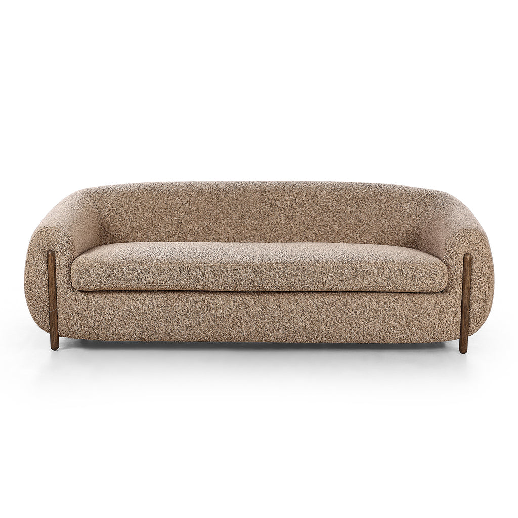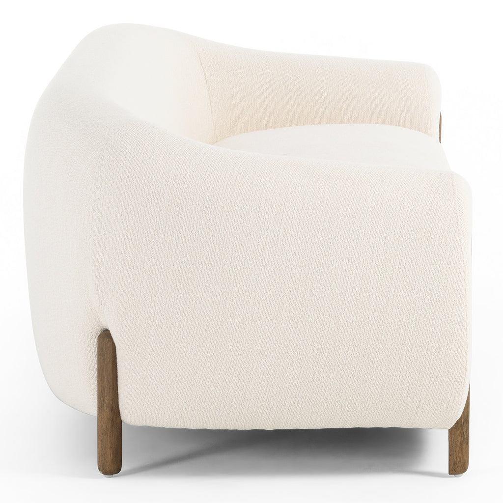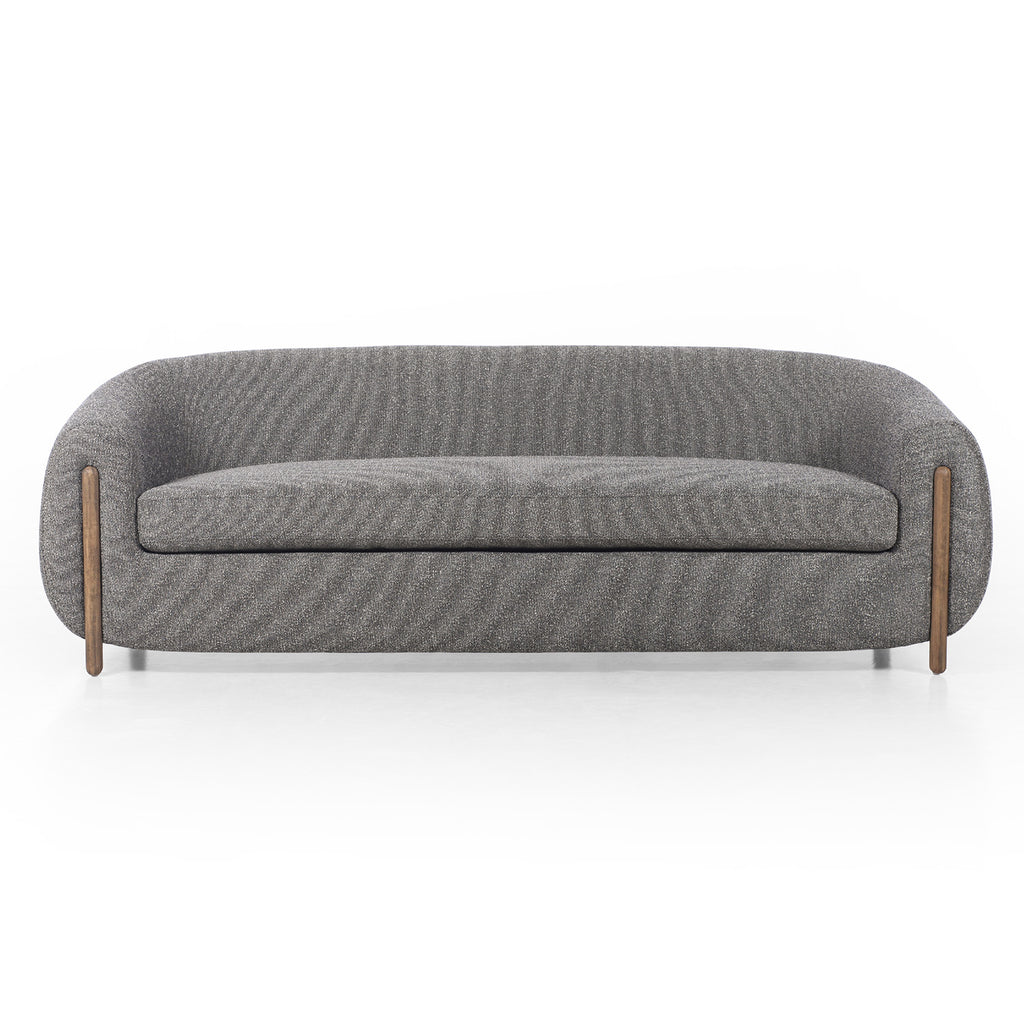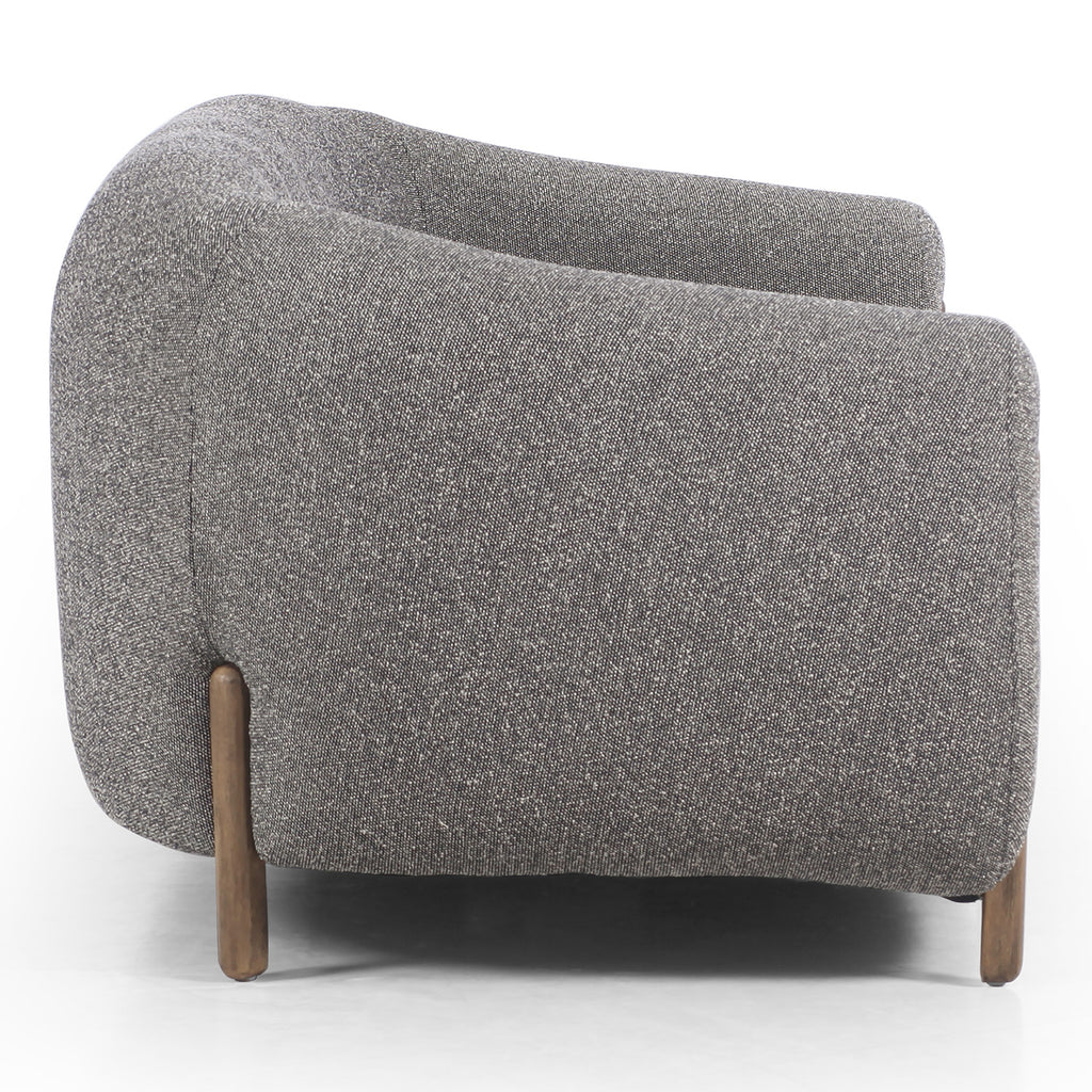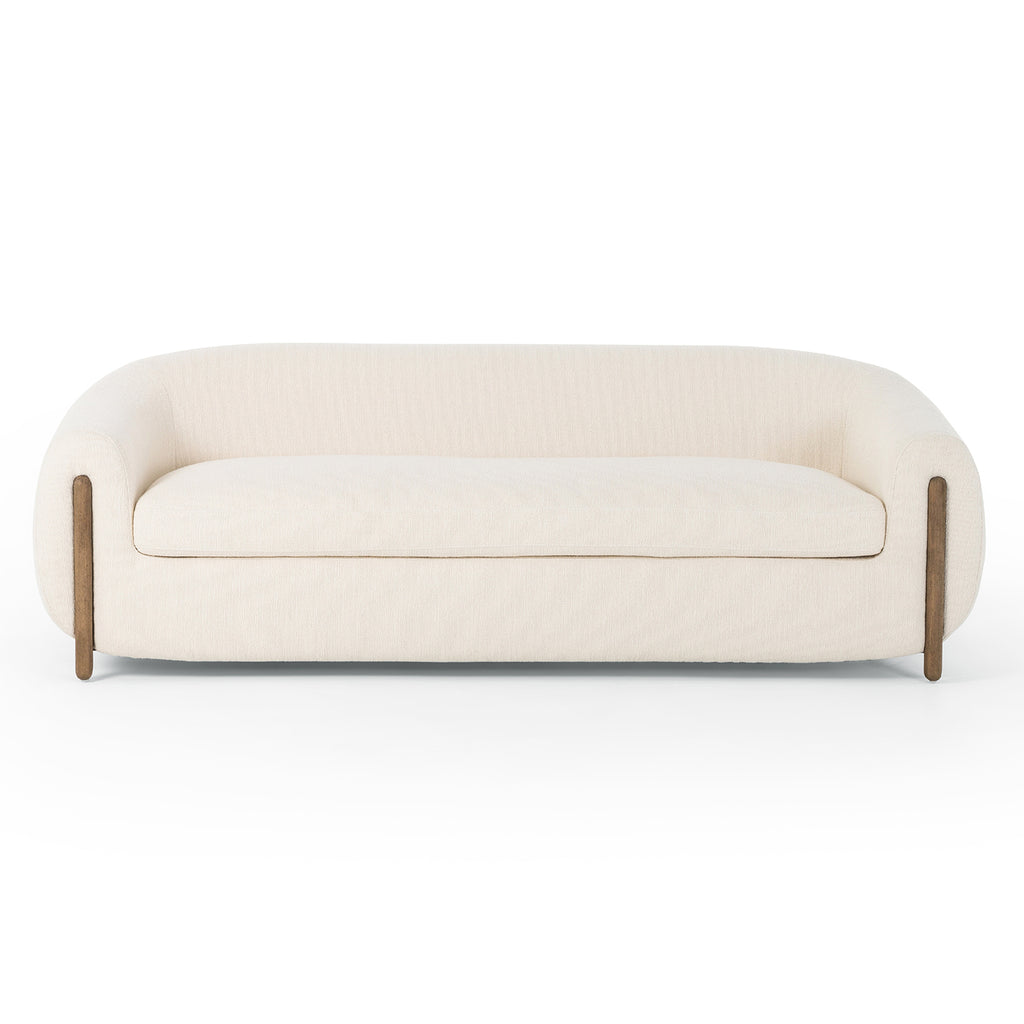 A fresh, elongated take on the traditional tub chair, with exaggerated depth for drama and comfort. Solid parawood legs intersect upholstery on this plush sofa for clean contrast of color and scale. Performance fabrics are specially created to withstand spills, stains, high traffic and wear, ensuring long-term comfort and unmatched durability.