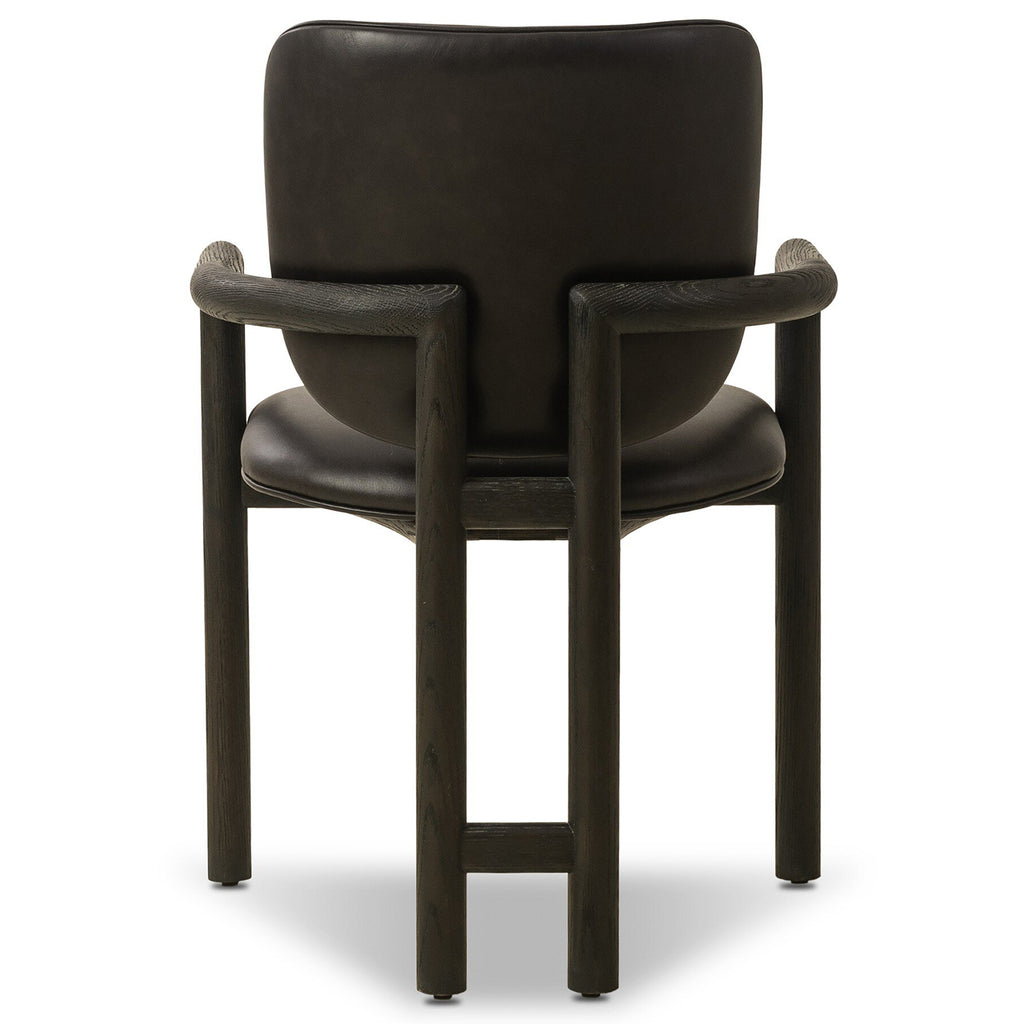 A three-leg format dining chair, streamlining a traditional shape with a touch of intrigue. Tubular framework pairs with curves and a barrel back, bringing a softness to the overall look and design.