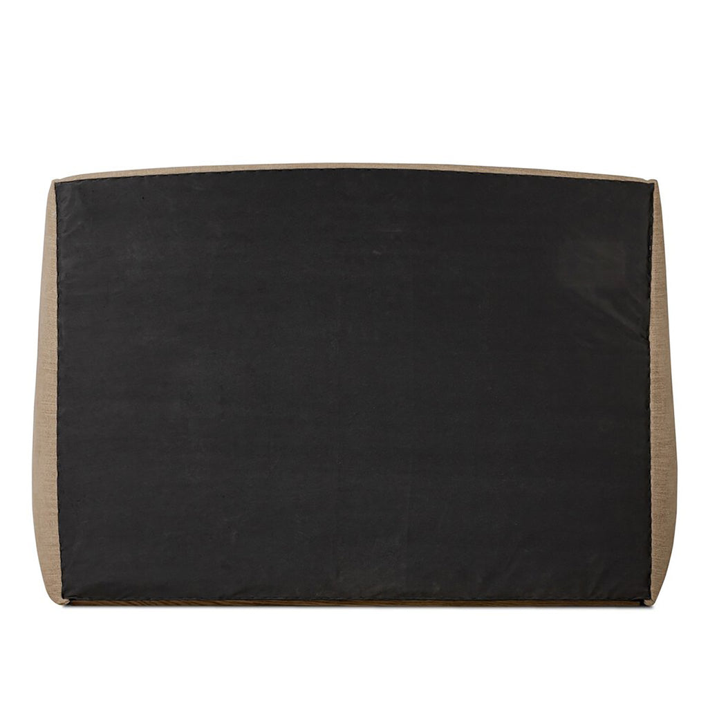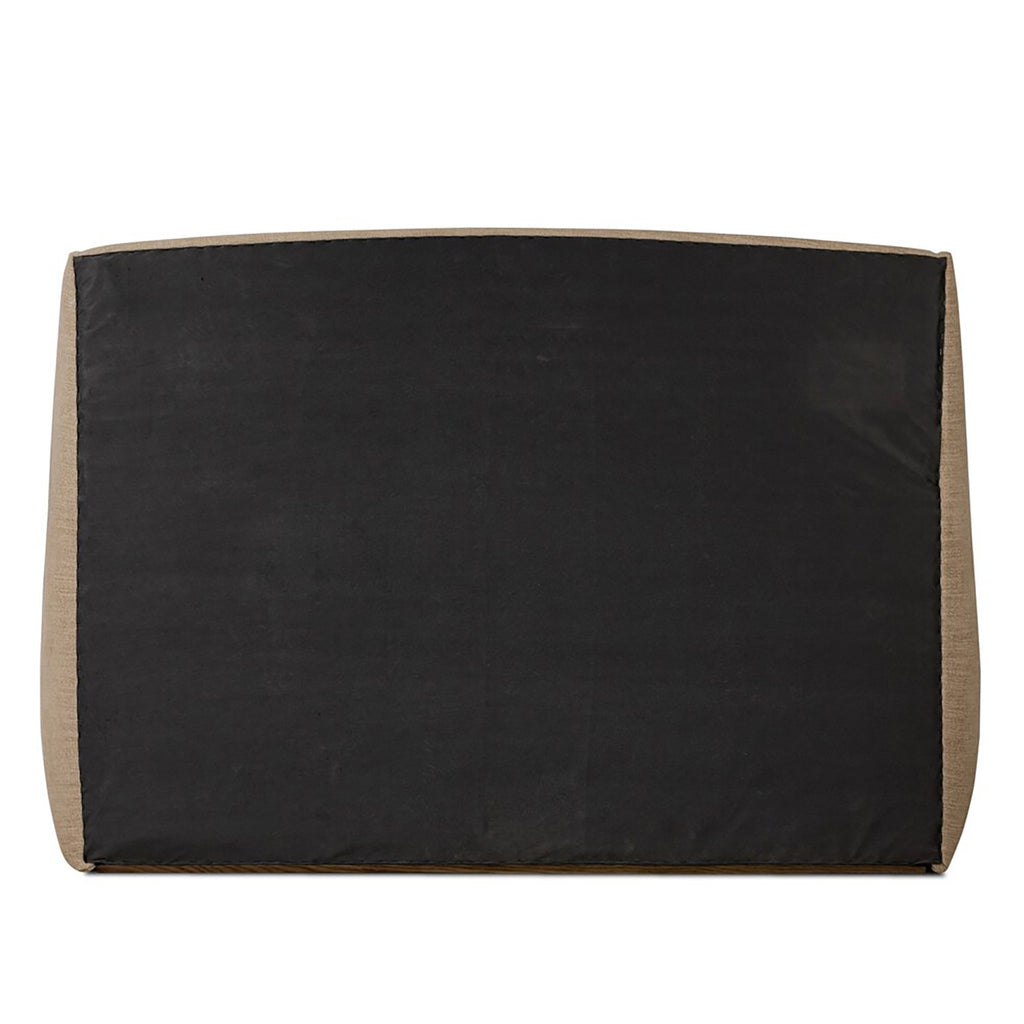 Clean lines meet contoured curves for a timeless bedroom look. A petal-shaped shelter overlaps side rails for a unique, comforting silhouette. Fully upholstered in a versatile taupe that complements a wide range of color palettes.