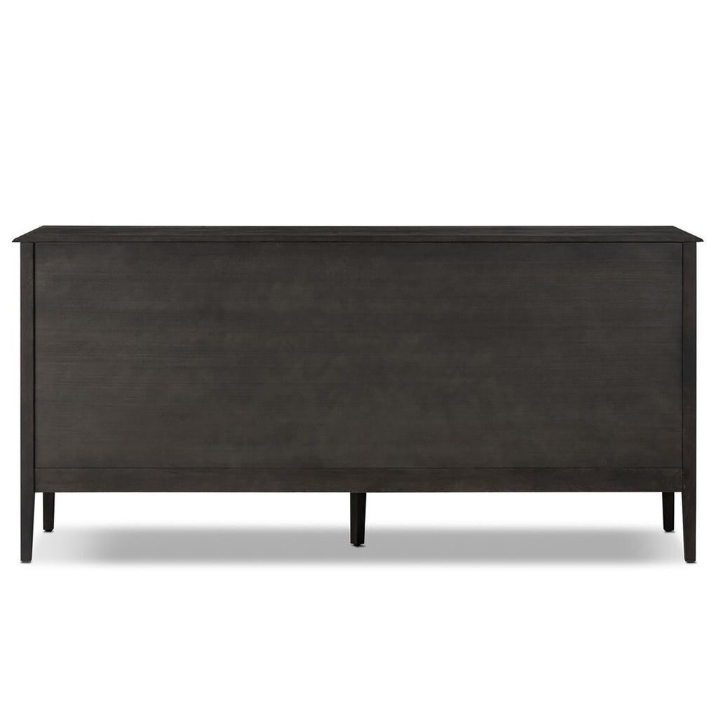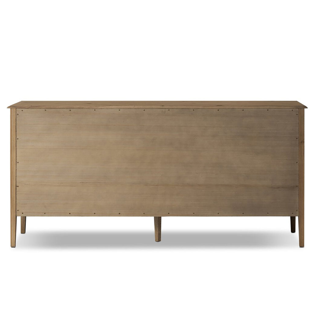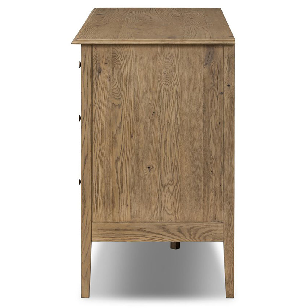 A cleanly shaped six-drawer dresser is crafted from aged smoked oak, highlighting the wood's natural grain. Roomy drawers offer plenty of space for bedroom storage, while the slim, tapered legs give the piece a subtle lift, creating a grounded look.