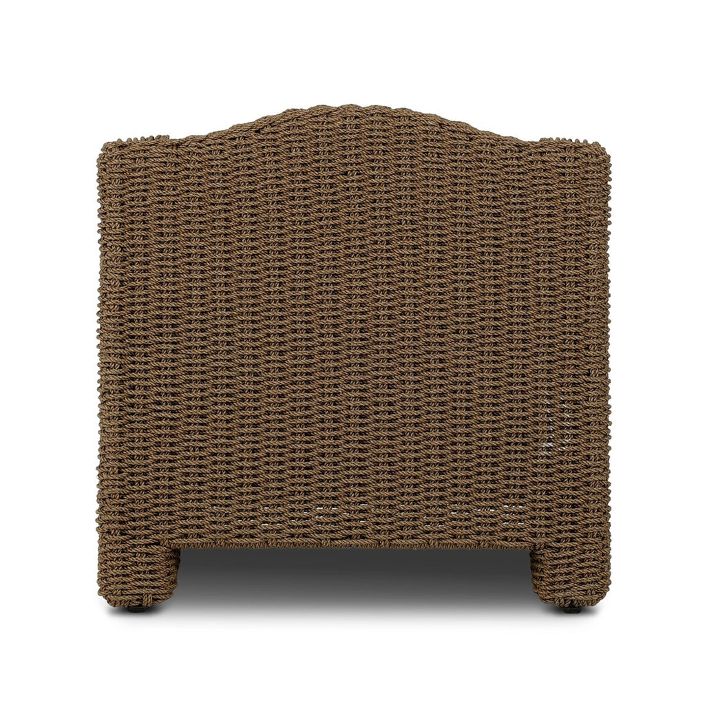 Twisted faux rattan is double twisted for a chunky feel, inspired by traditional coastal designs. The fully woven, cambelback silhouette of this outdoor chair adds visual interest, with high-end, linen-like upholstery bringing subtle contrast to the seat cushions. Sustainably made with zero waste, luxurious Italian upholstery places a new and unique spin on indoor/outdoor seating, offering soft, durable fabric that's highly resistant to sun, stains, mold and abrasion. Cover or store indoors during inclement weather and when not in use.