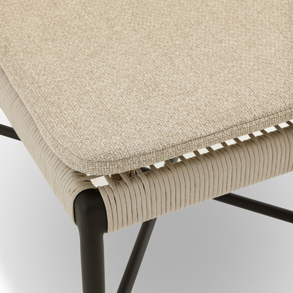 Make a beautifully monochromatic statement, indoors or out. Finished in a light taupe, slim, airy aluminum frames all-weather wicker seating with a top cushion for added comfort. Cover or store indoors during inclement weather and when not in use. Our Weatherproof Outdoor Dining Chair Cover in size small fits this chair.