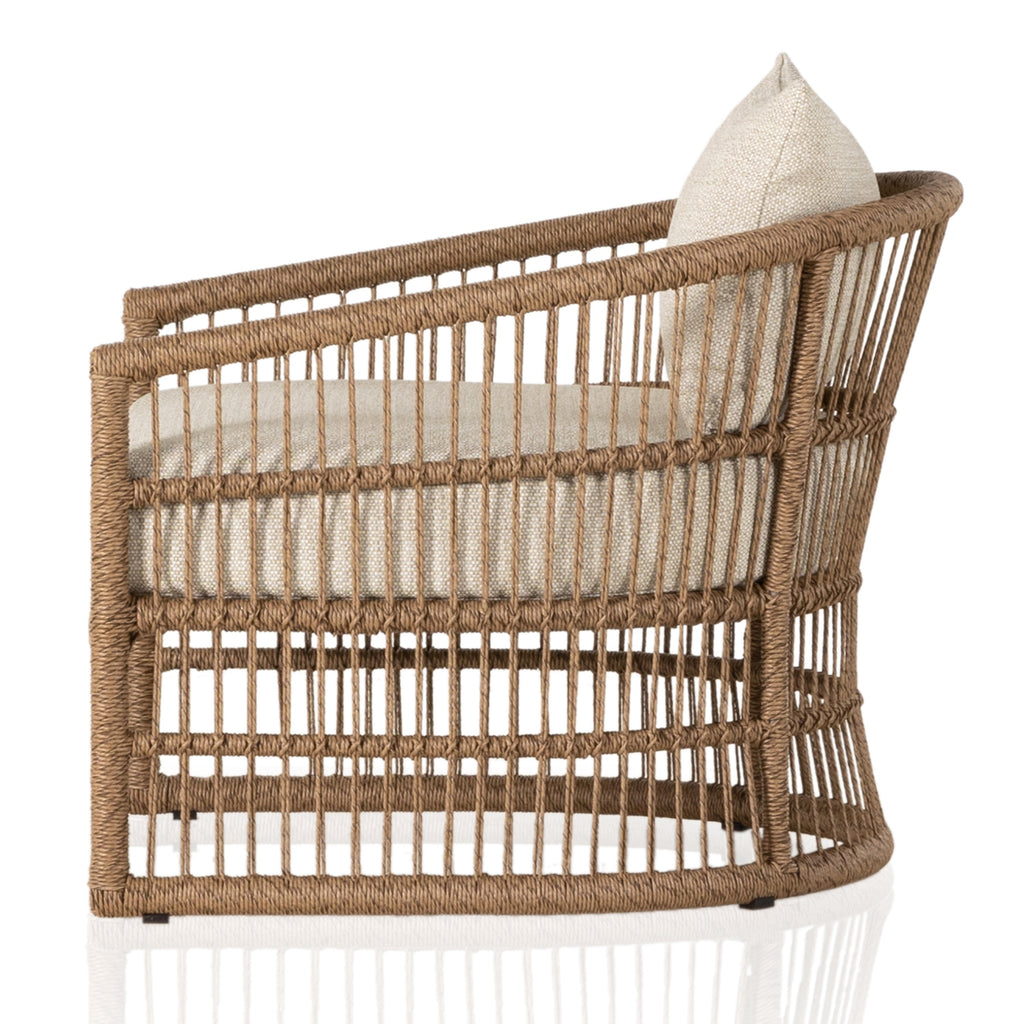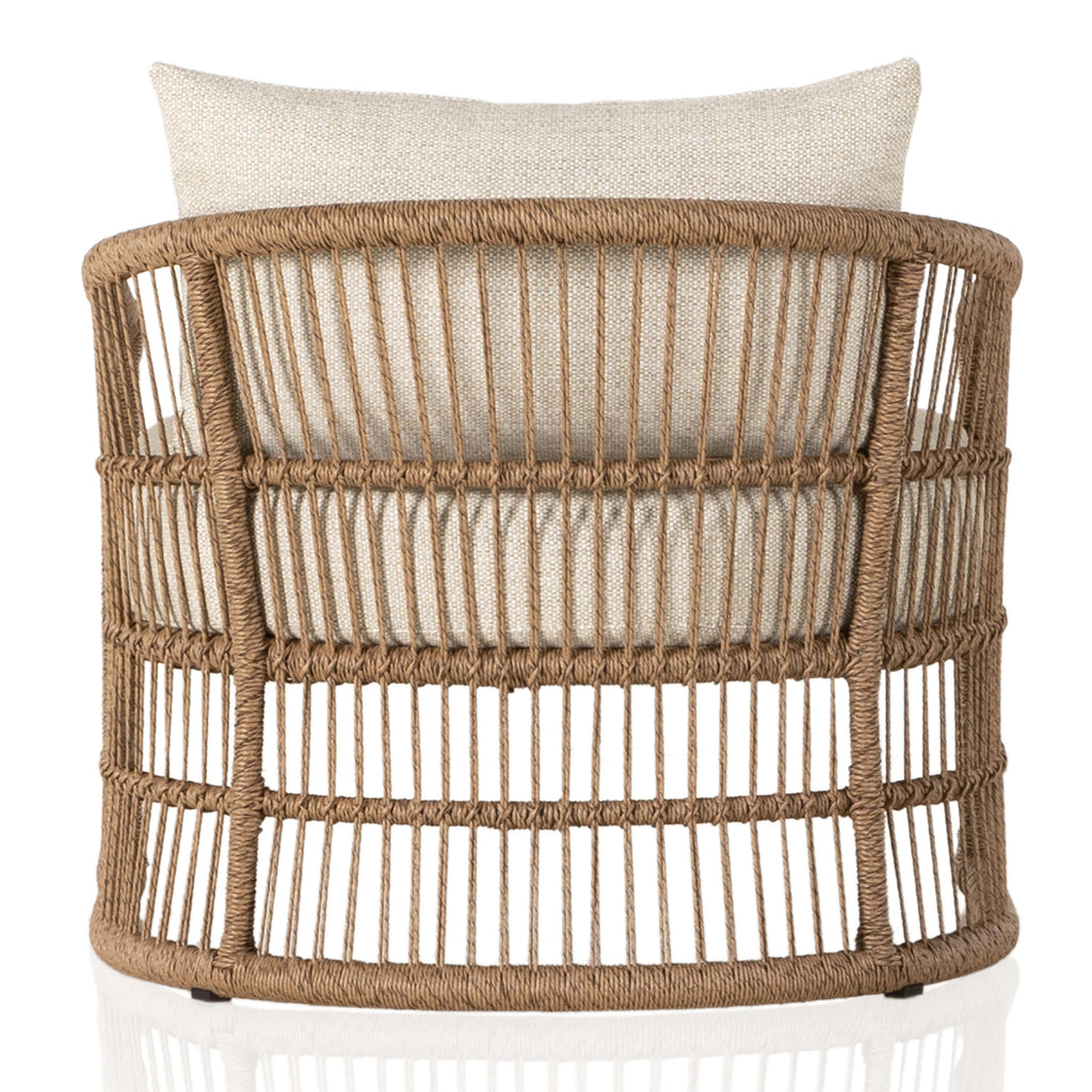 Cottage-inspired, faux hyacinth mimics its natural counterpart, with joint wrapping and texture for depth and character. Varied proportion for dimension. Upholstered in a UV-resistant, water-repellent, quick-drying fabric. Cover or store indoors during inclement weather and when not in use.
