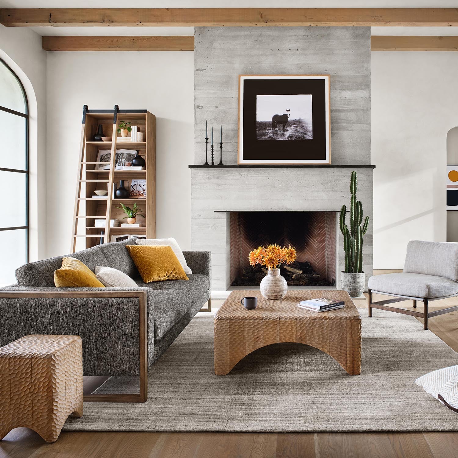 Crisp, clean comfort. Charcoal or Cream colored upholstery of performance grade cradles within an exposed parawood frame, for detail-driven contrast.
