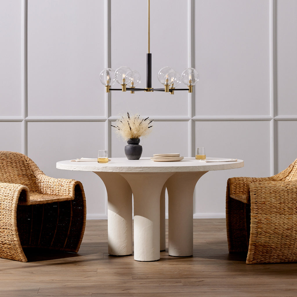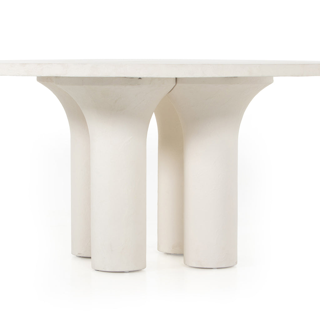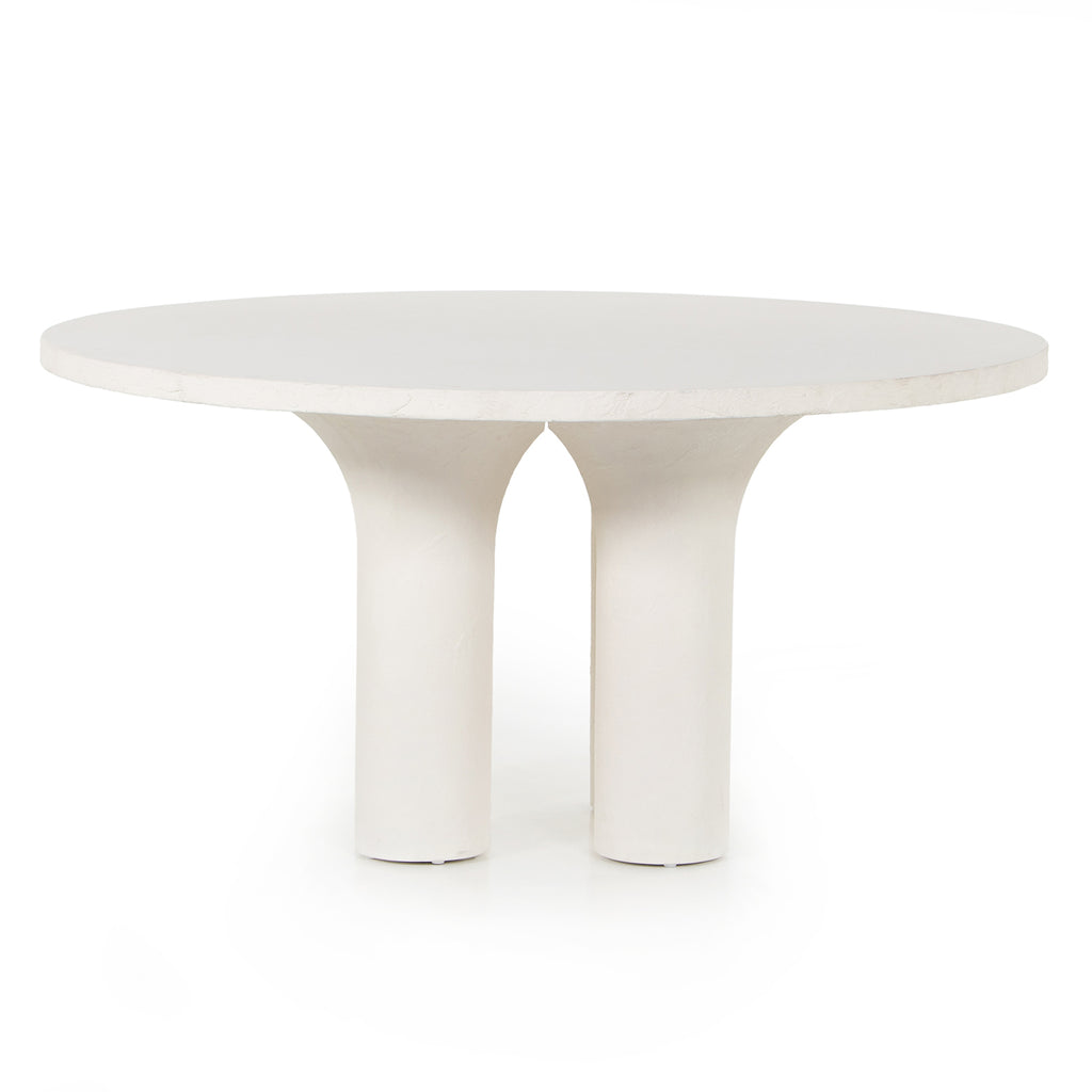 Made from plaster-molded concrete, a cylindrical pillar-style base tapers slightly to support a smooth white-finished tabletop for beautifully complementary texture.