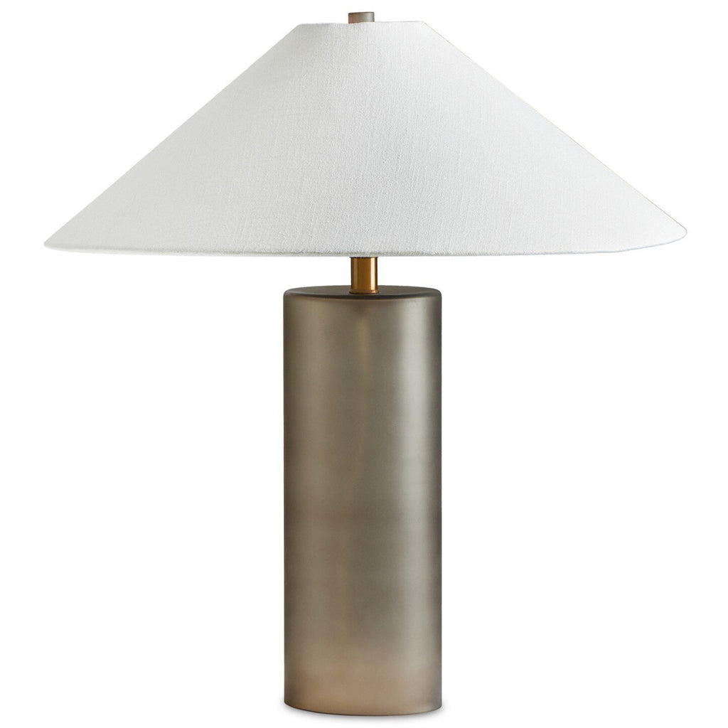 Inspired by Italian glass artisans, blown smoked glass forms a monolithic, cylindrical base. Topped with a short, tapered shade with a sharp finished edge.