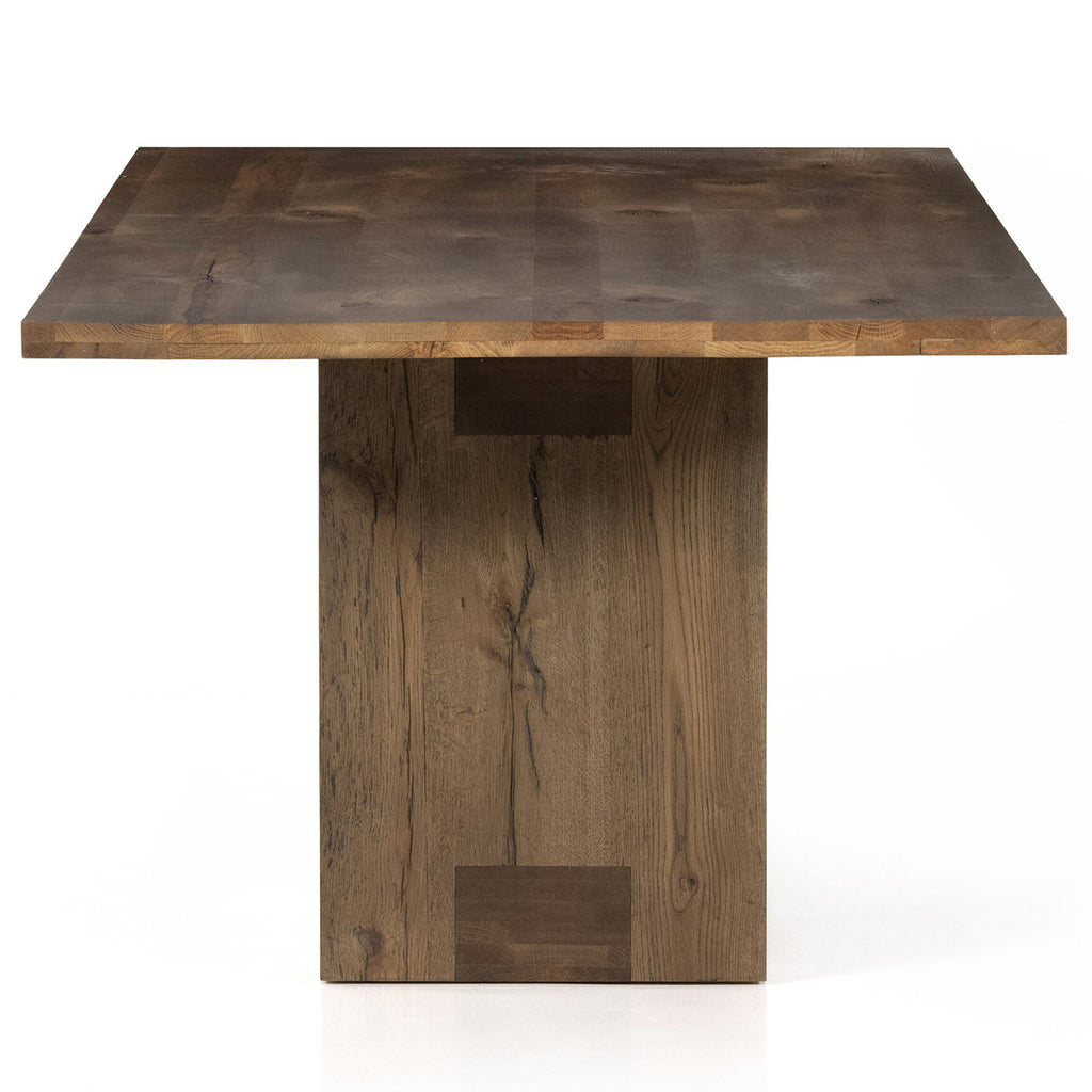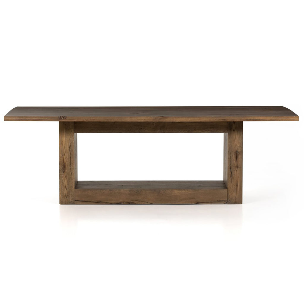 A grand dining table made from hand-selected oak veneer, with large-scale joinery for heft. Seats six comfortably. Designed in partnership with longtime Four Hands collaborator Thomas Bina and Brazilian designer Ronald Sasson.