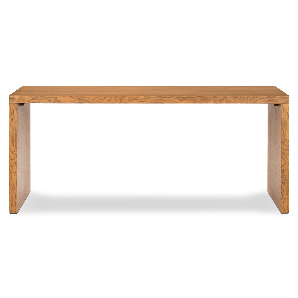 Made from amber-finished oak, this streamlined desk features clean lines and simple styling for a minimalist look that can move between spaces and styles with ease.