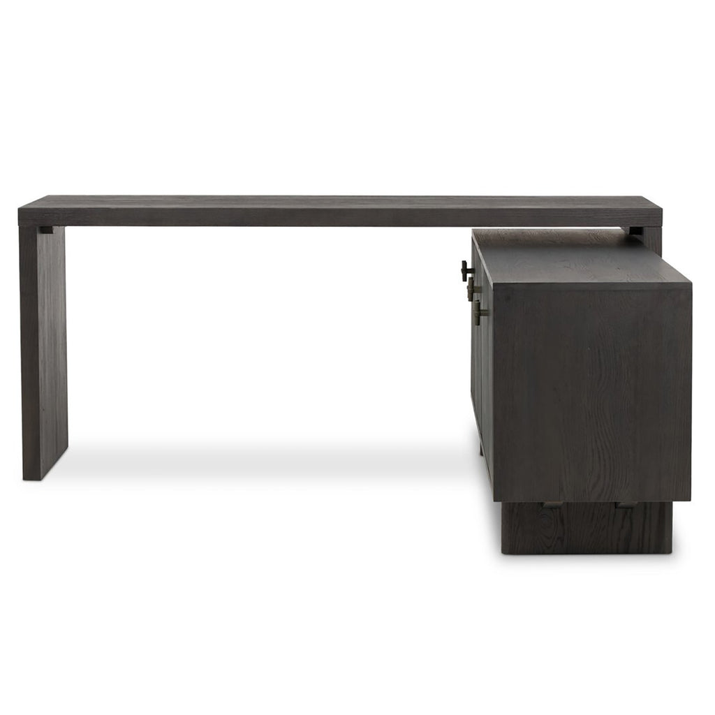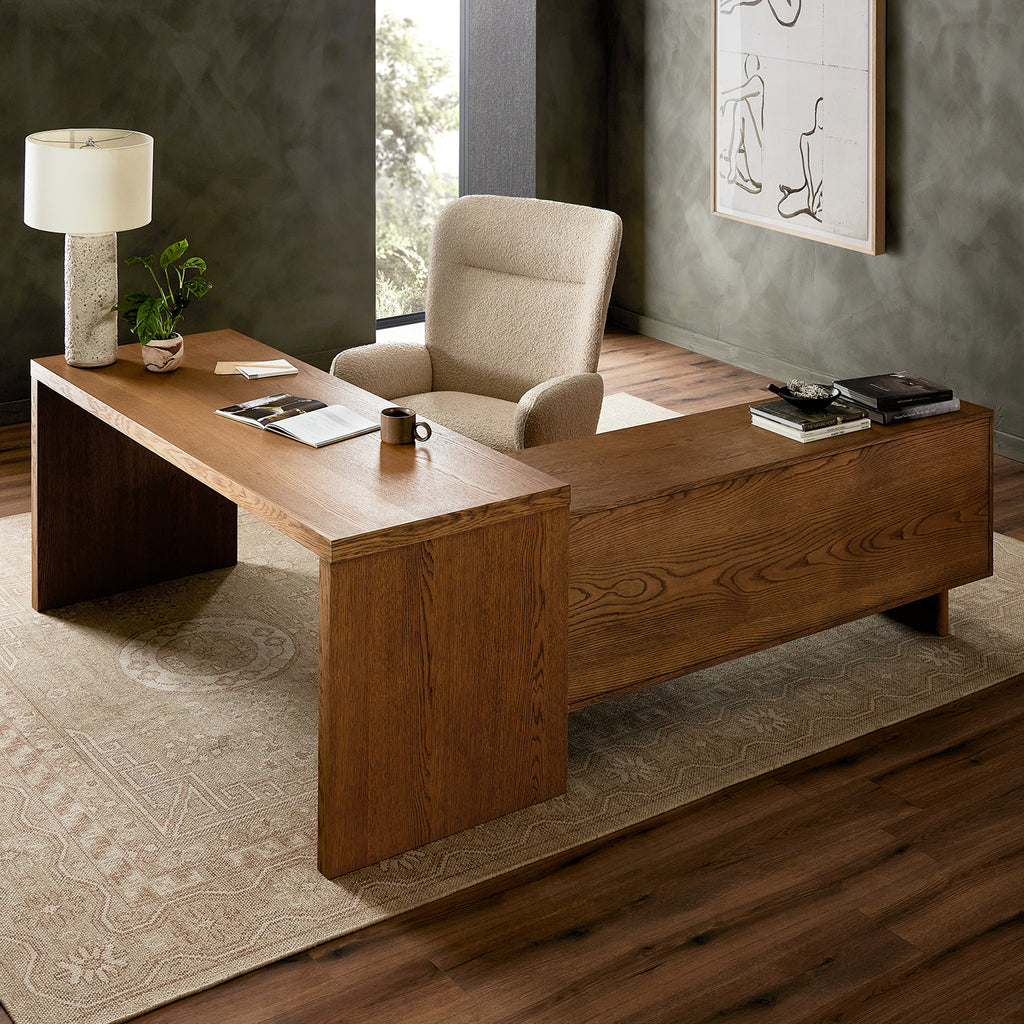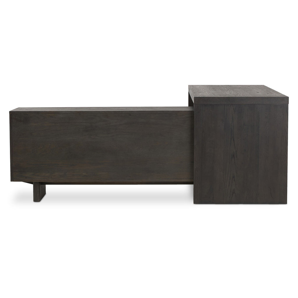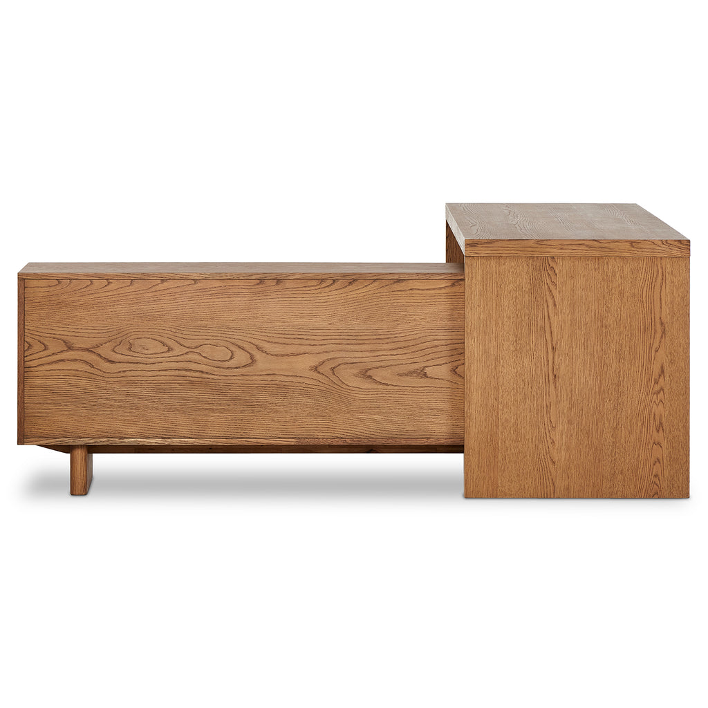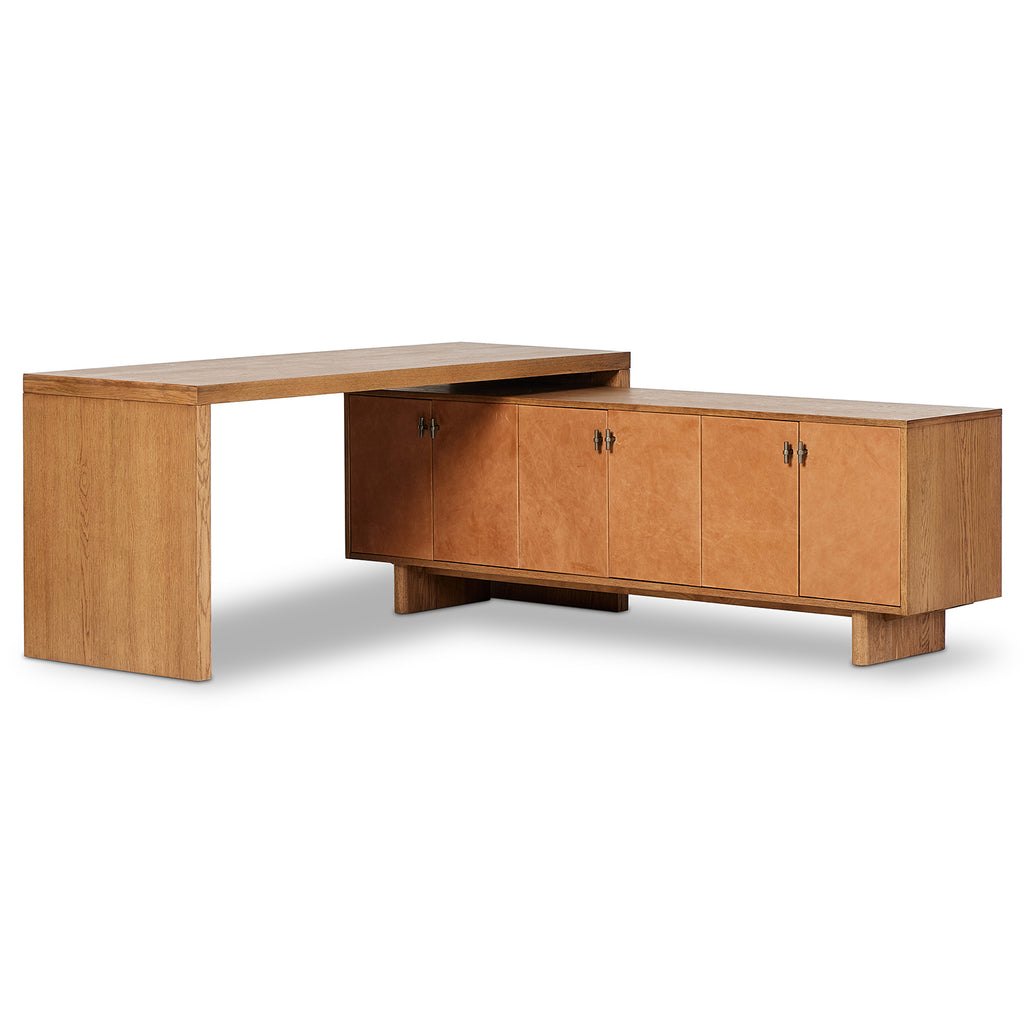 Reflect your unique style with a modular desk and matching media console of amber-finished oak and cognac top-grain leather. Arrange to suit your space, while adding plenty of storage space to the office.