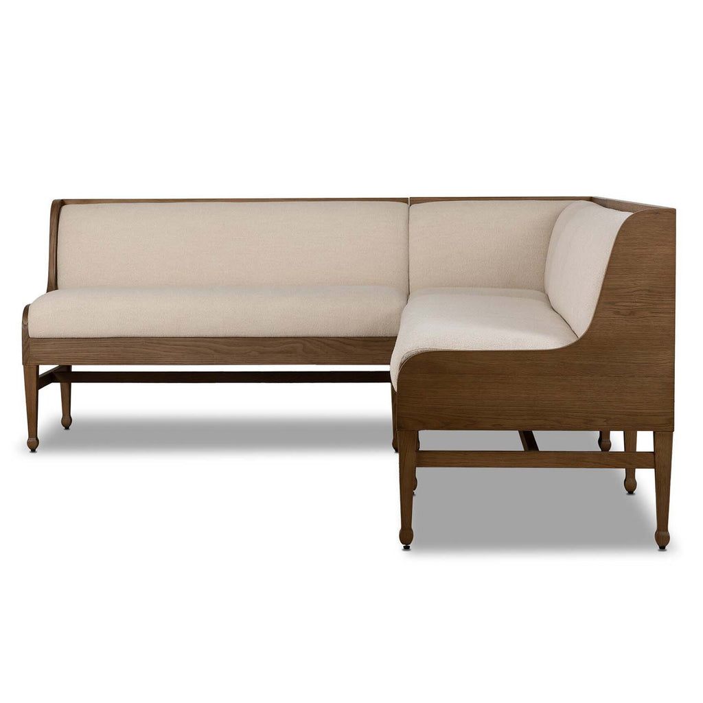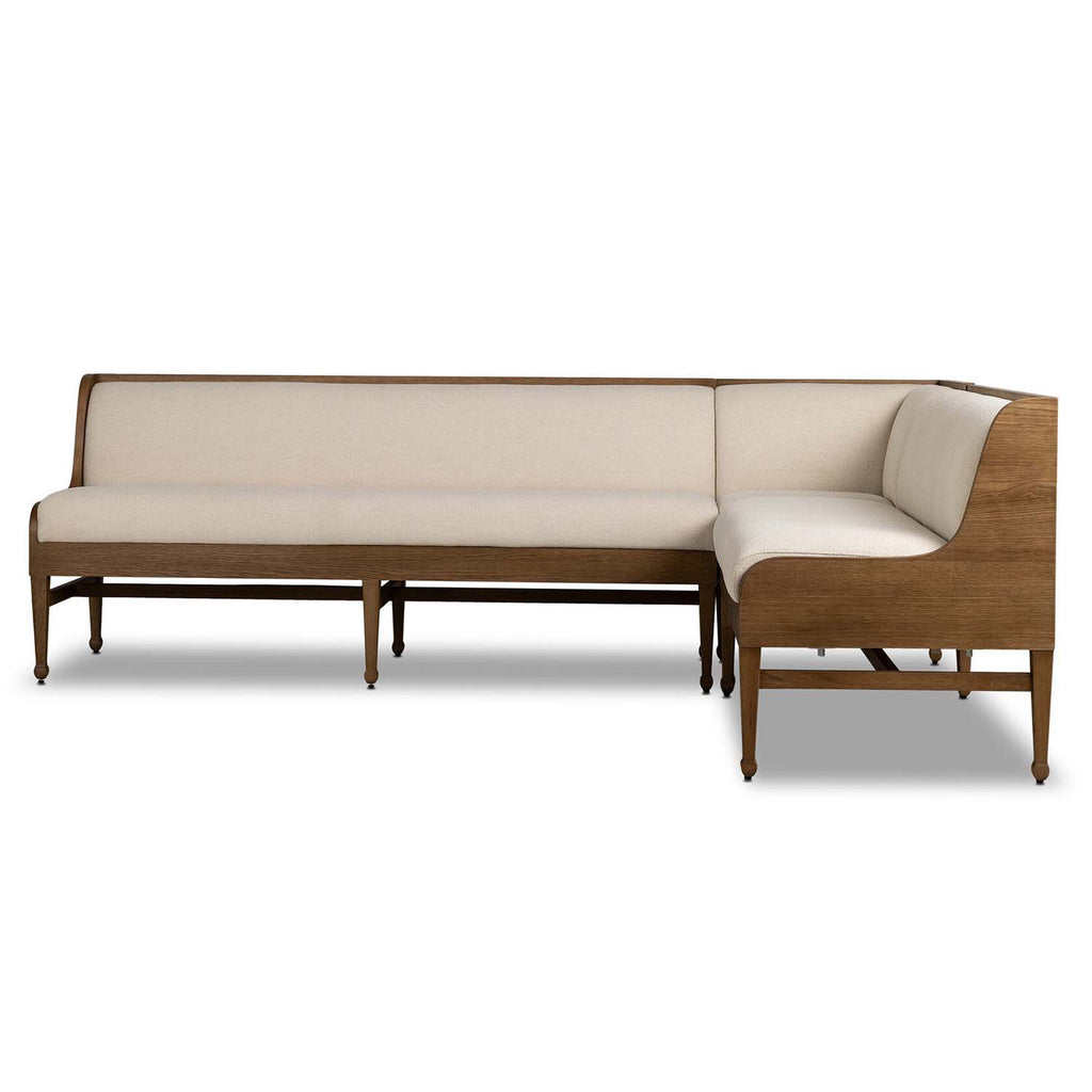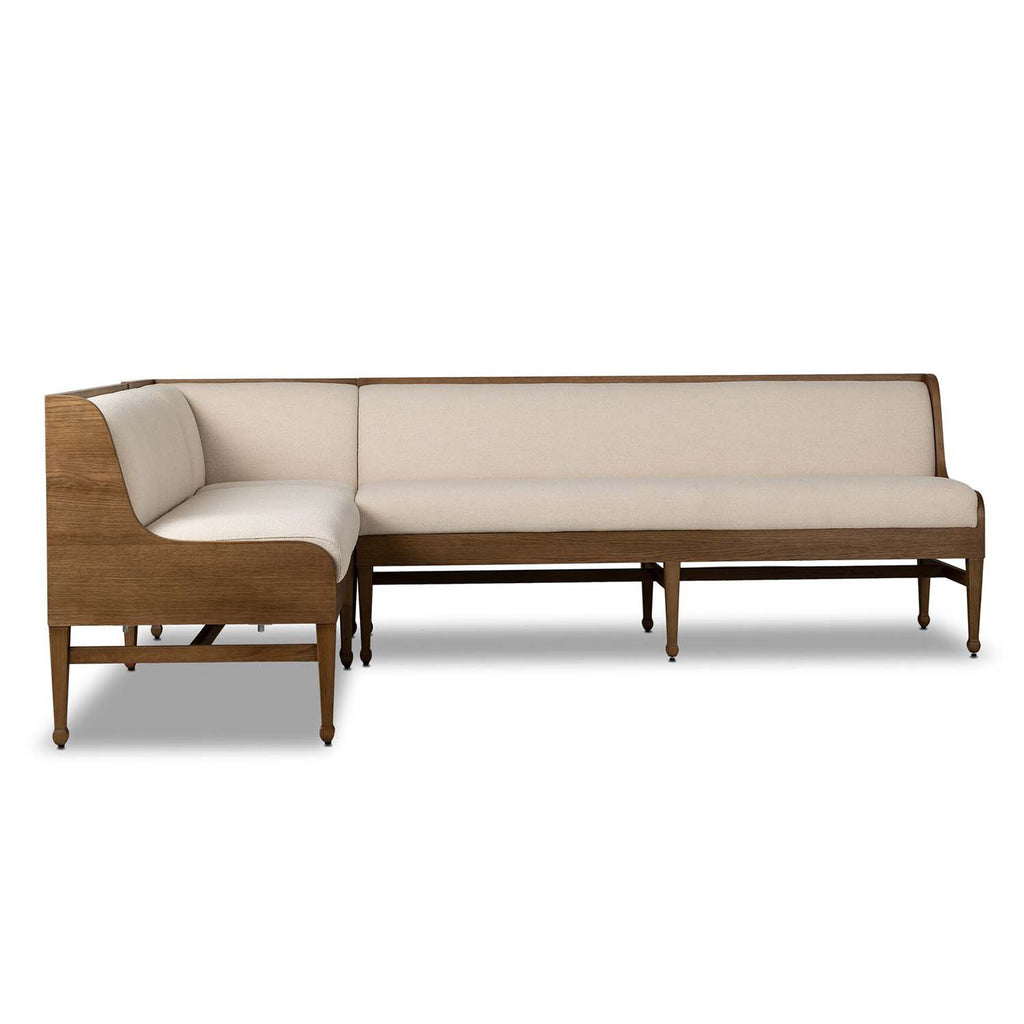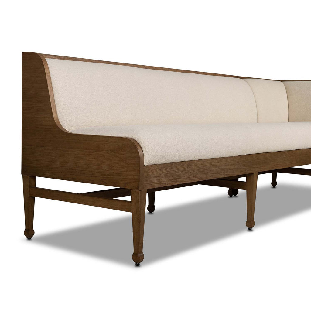 Create your own corner for dining and conversation with a modular banquette crafted from warm oak. Thick cushioning supports the seat and back, upholstered in snow-white Crypton®. Tall, tapered square legs have bun feet for a traditional finish. Crypton® performance fabric is specially engineered for protection against stains, moisture and odor.