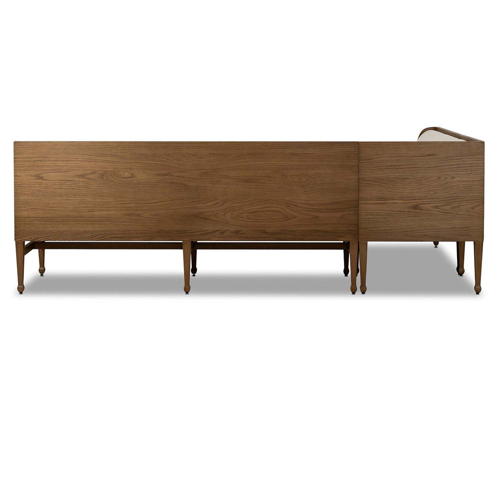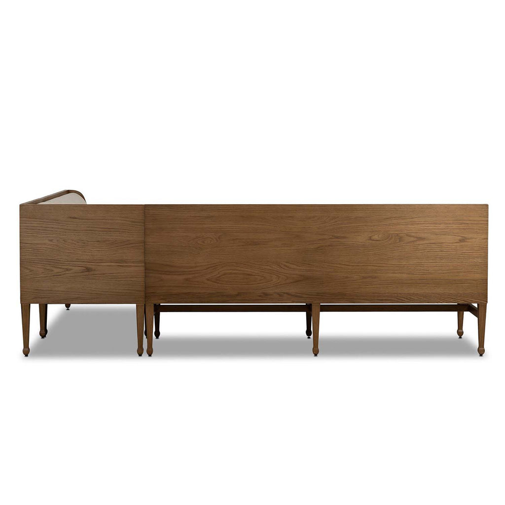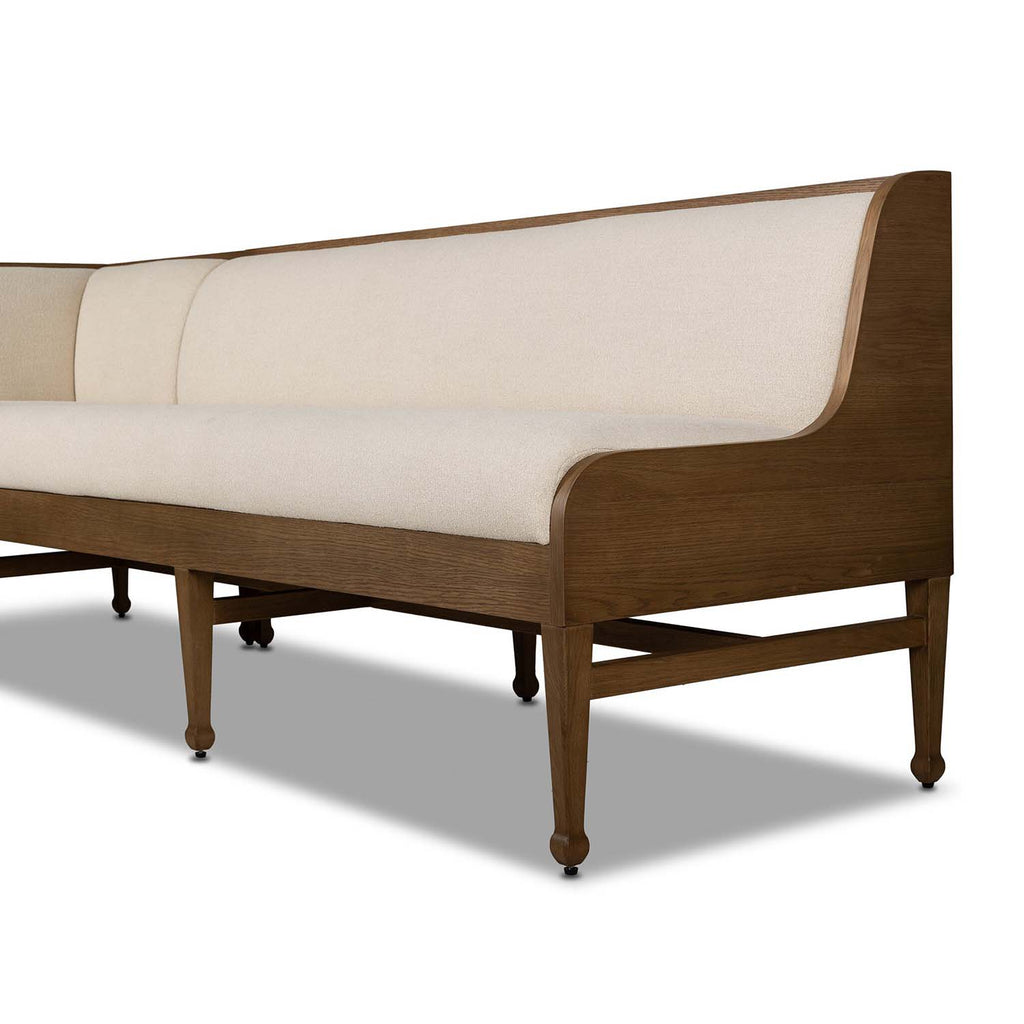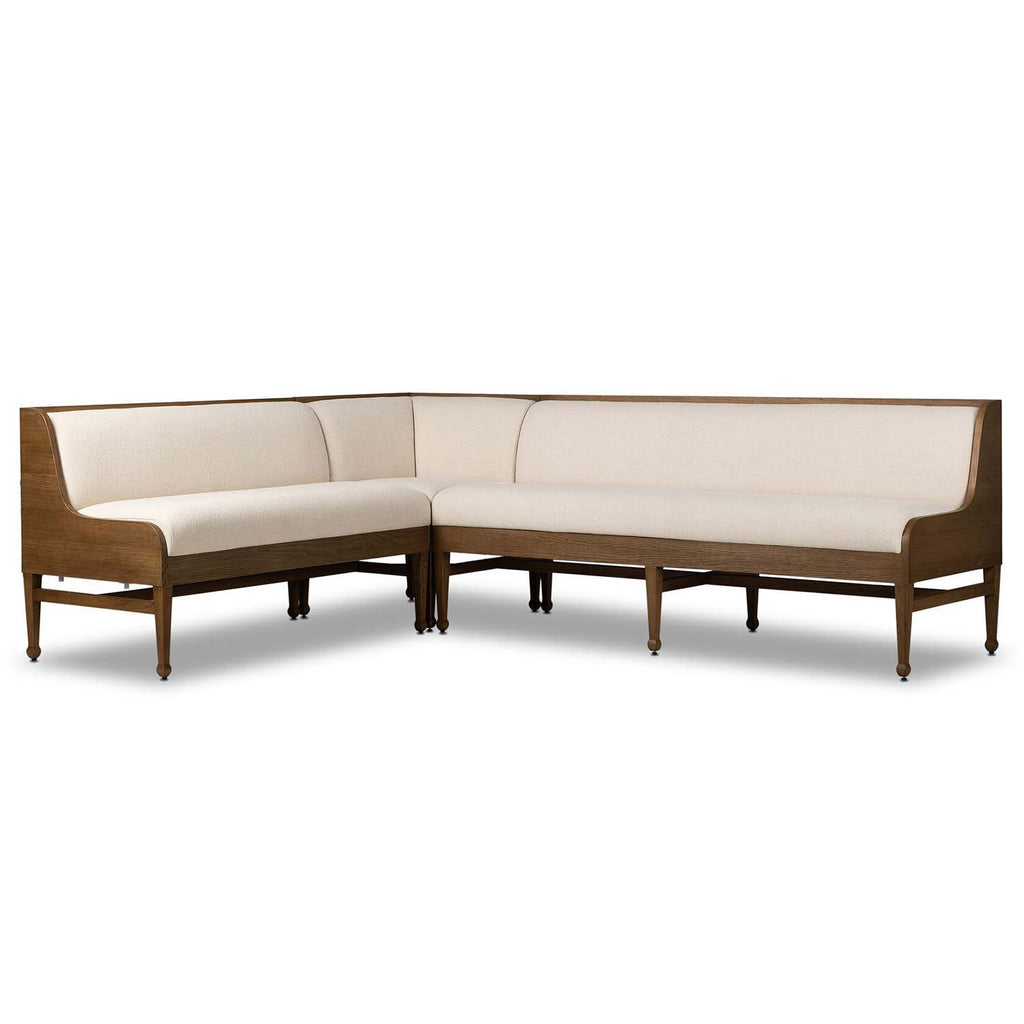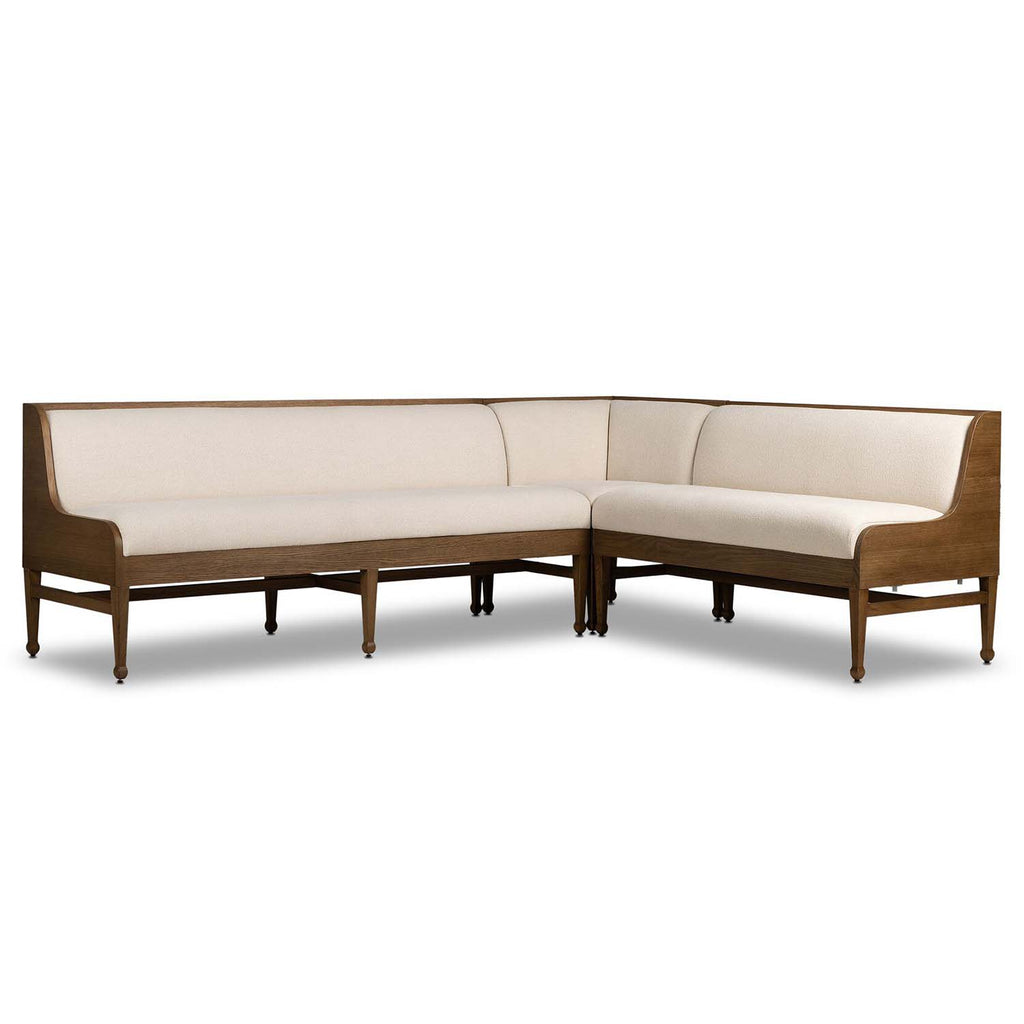 Create your own corner for dining and conversation with a modular banquette crafted from warm oak. Thick cushioning supports the seat and back, upholstered in snow-white Crypton®. Tall, tapered square legs have bun feet for a traditional finish. Crypton® performance fabric is specially engineered for protection against stains, moisture and odor.