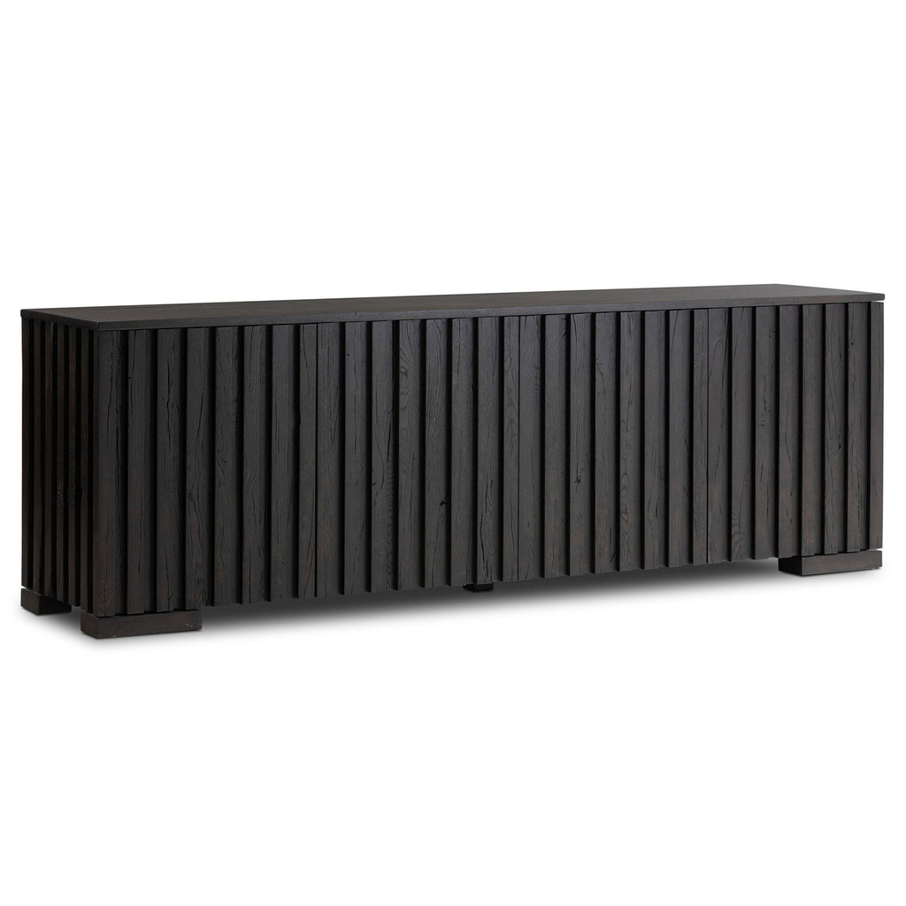 Made from reclaimed French oak and finished in a rich espresso, a spacious sideboard features heavy reeding, for a linear look reflective of midcentury inspiration. Fully finished interior. Designed in partnership with longtime Four Hands collaborator Thomas Bina and Brazilian designer Ronald Sasson.