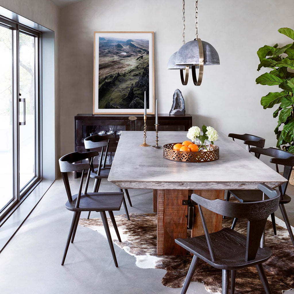 Resolutely modern, Four Hands furniture collection mixes materials and influences for a fresh, inspired look. This new take on the mid-century Windsor chair has a bowed, sculptural silhouette. A soft black, brown or off white finish adds movement to the wood by highlighting the natural grain of weathered oak.