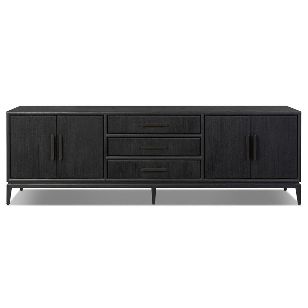 Elevate your media or living space with a console of oak. A smooth top pairs with three drawers and two cabinets each covered with woven paper cord. The result: a Scandinavian-inspired look that will work into your collection beautifully.