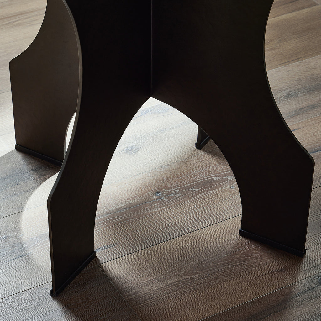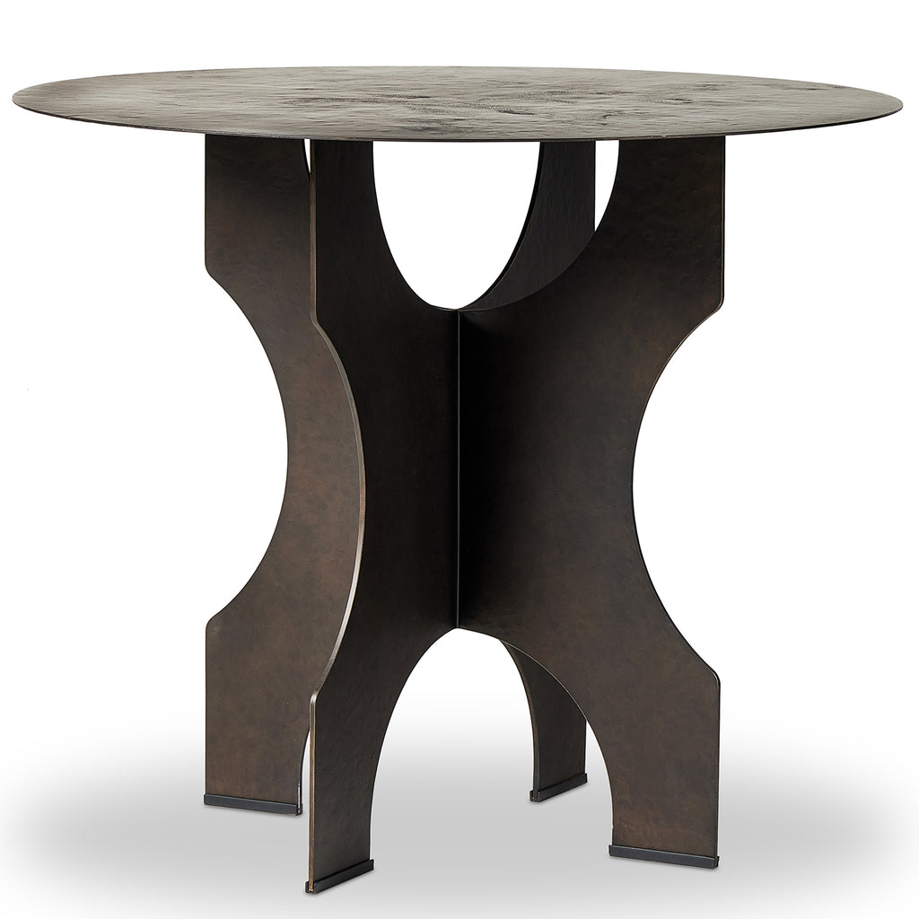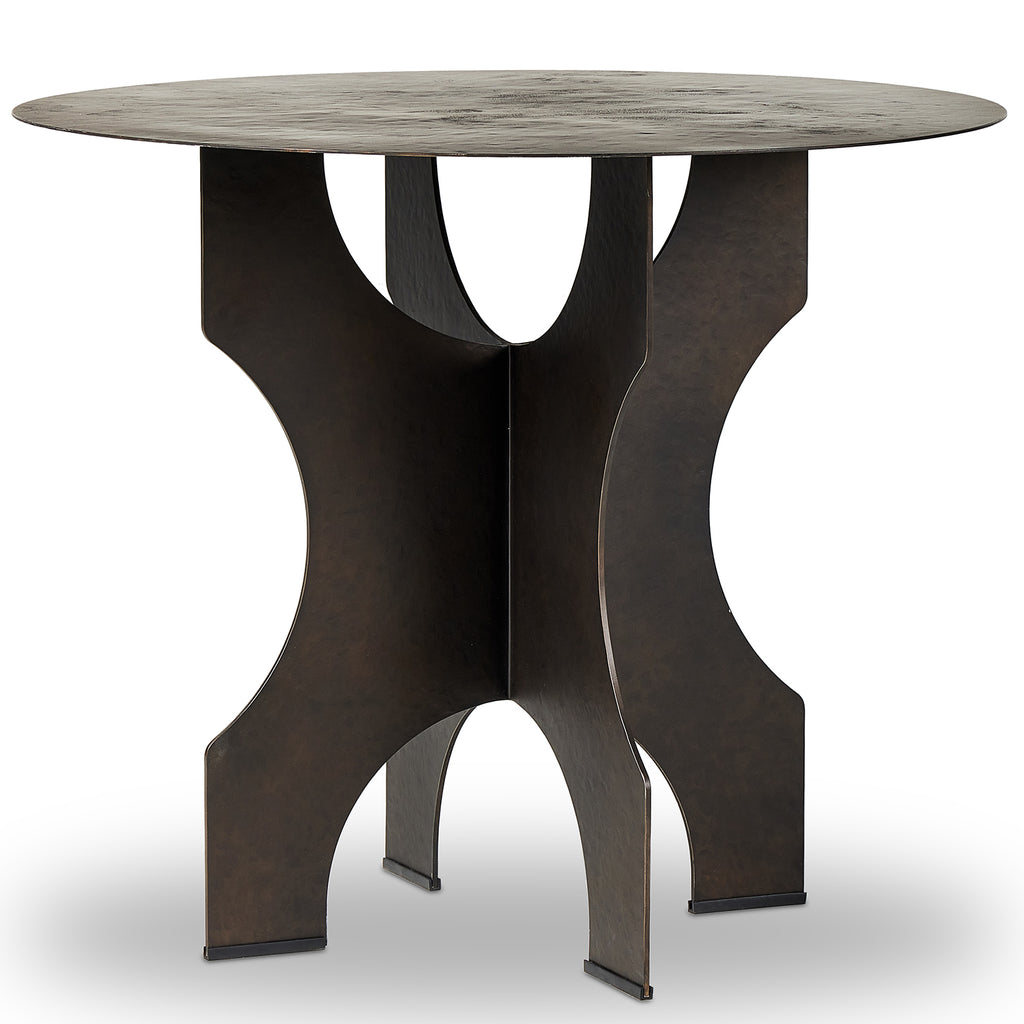 By the makers at Van Thiel, known for their antique-inspired pieces and hand-applied finishes. Solid iron with a textured bronze finish forms this unique, structured end table with in Dustrial vibes.