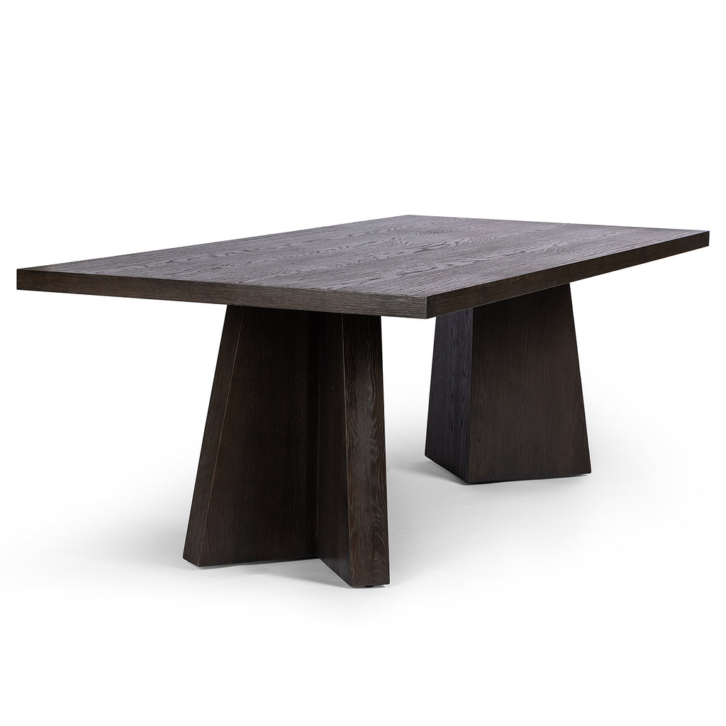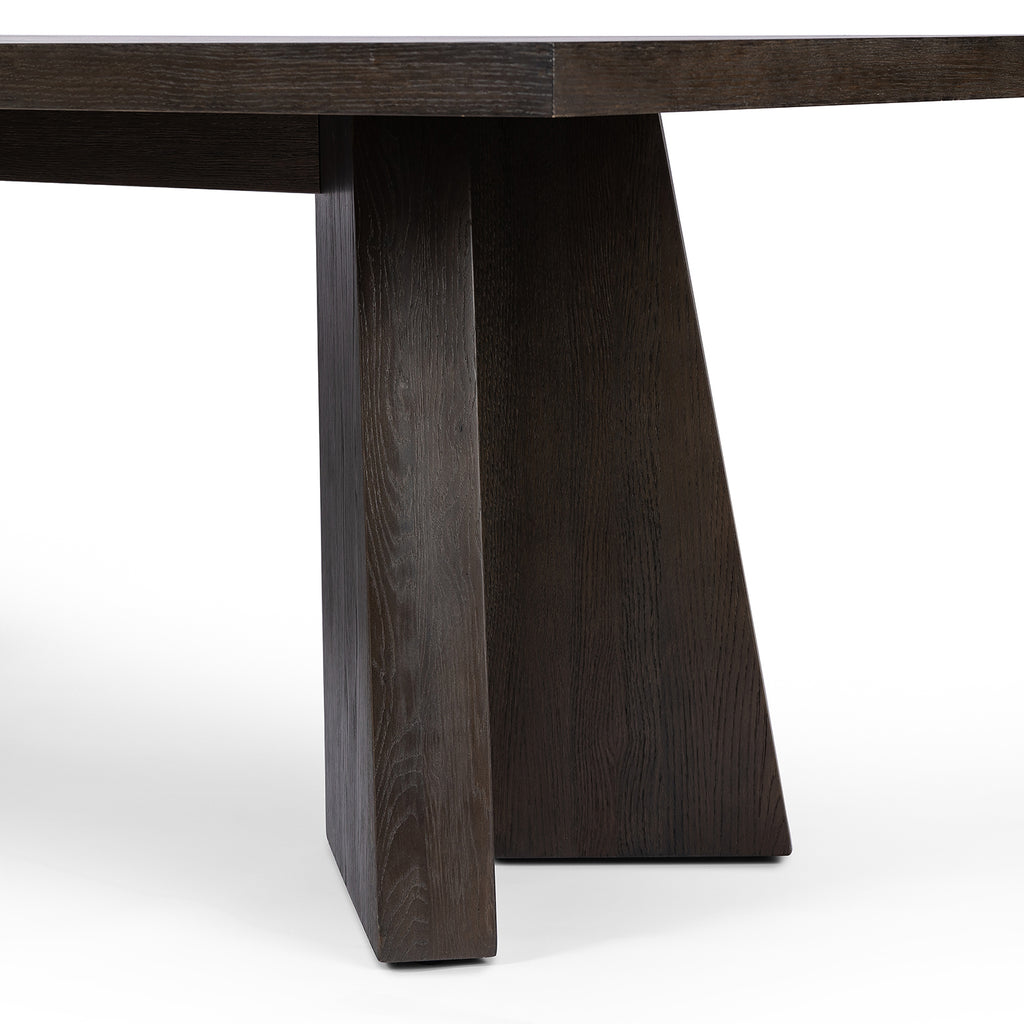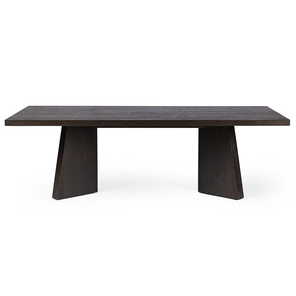 Made from oak and finished in a rich espresso, bold, angular shaping brings major impact to the dining room. Clean, classic lines suit different design styles with ease, from modern to traditional. Seats 10 comfortably.
