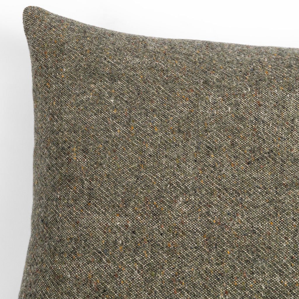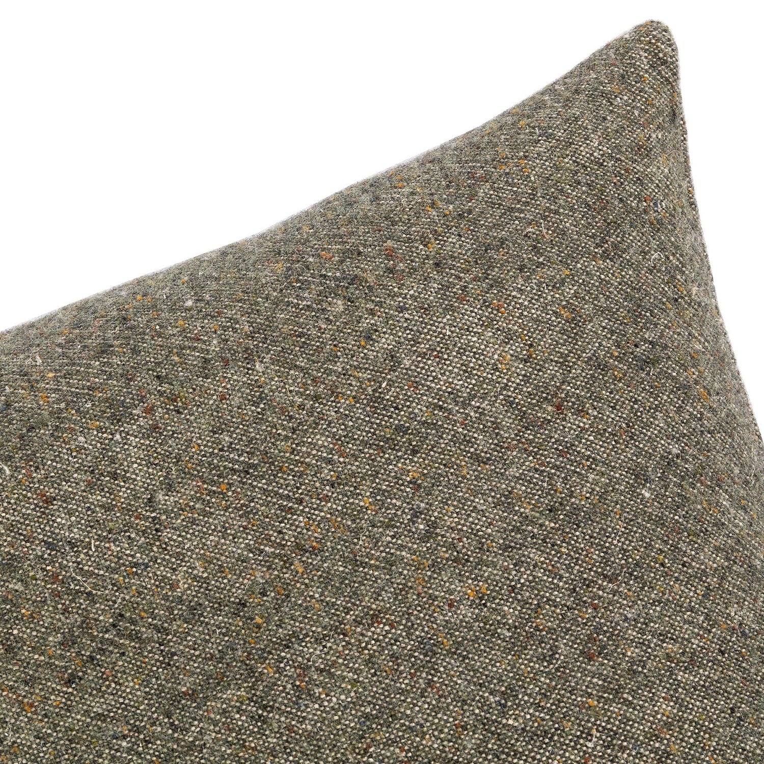 A linen throw pillow in a neutral taupe, perfectly sized for layering.