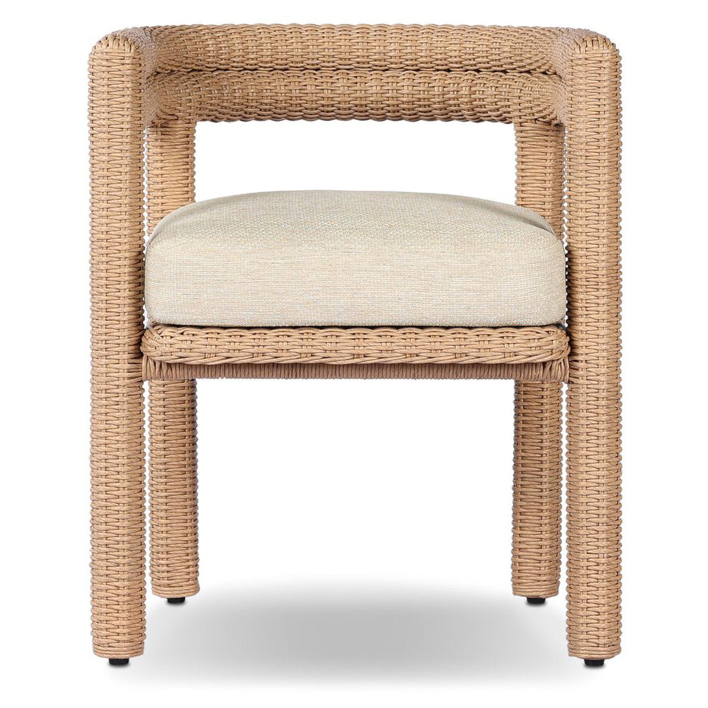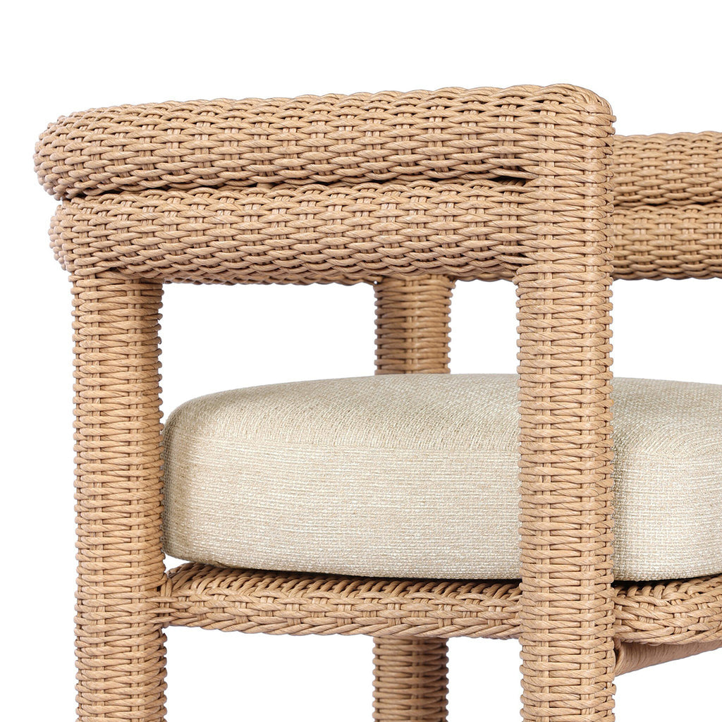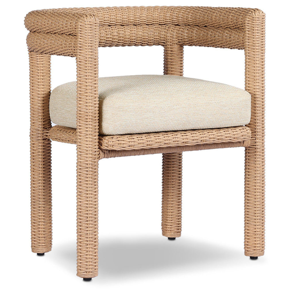 Tubular shaping lends a fluid look to this all-weather wicker outdoor dining chair, paired with a natural seat cushion for max comfort. Cover or store indoors during inclement weather and when not in use.