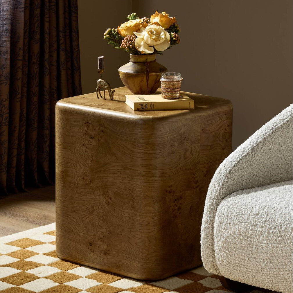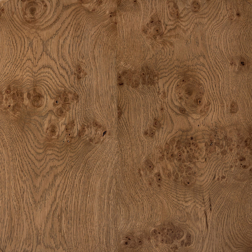 Style this versatile piece just about anywhere. Made from oak burl veneer with a warm wheat finish, rounded edges soften the look.