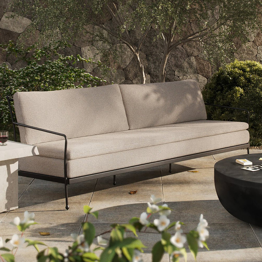 Movement-driven shaping — with double seat cushioning for sink-in comfort — this outdoor sofa brings a modern, French Deco-inspired look to the patio. Traditional vertical slats on the back pair with small finial details on the feet for a unique take on traditional. Cover or store inside during inclement weather and when not in use.