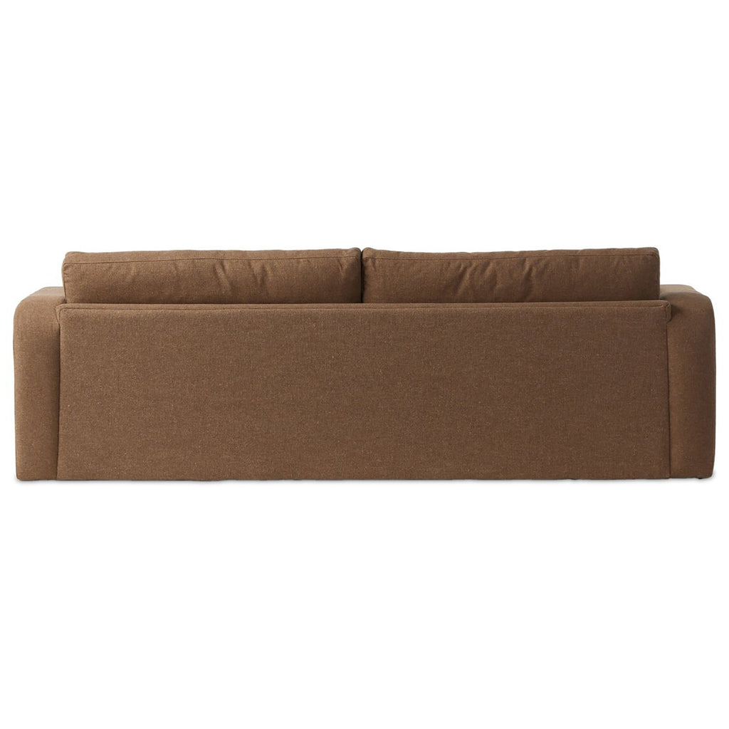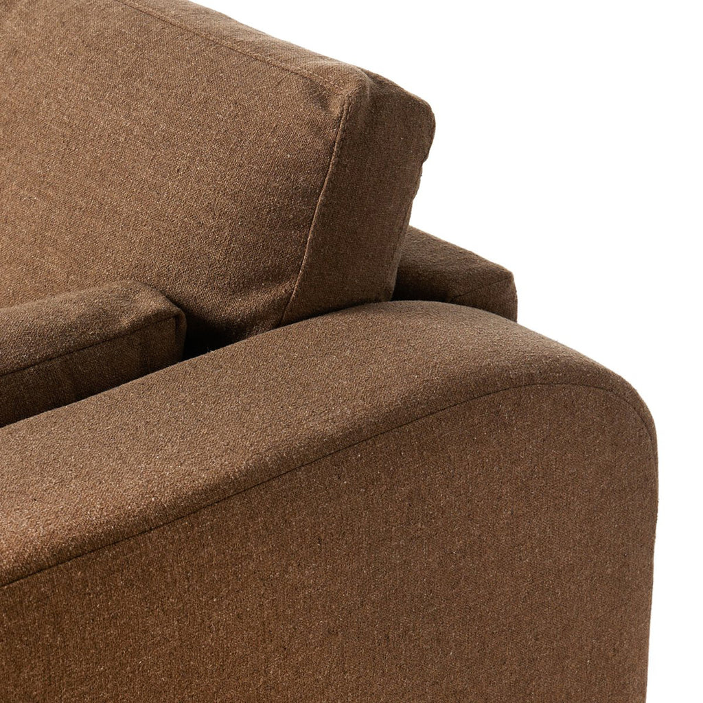 Made in the USA, this inviting sofa features large, arched arms with extra padding, offering a sleek yet comfortable look. Upholstered in a durable, linen-like fabric, it balances practicality with a soft, textured feel. Six loose cushions, including two large back and seat cushions and two side cushions, create a cozy, double-arm design.