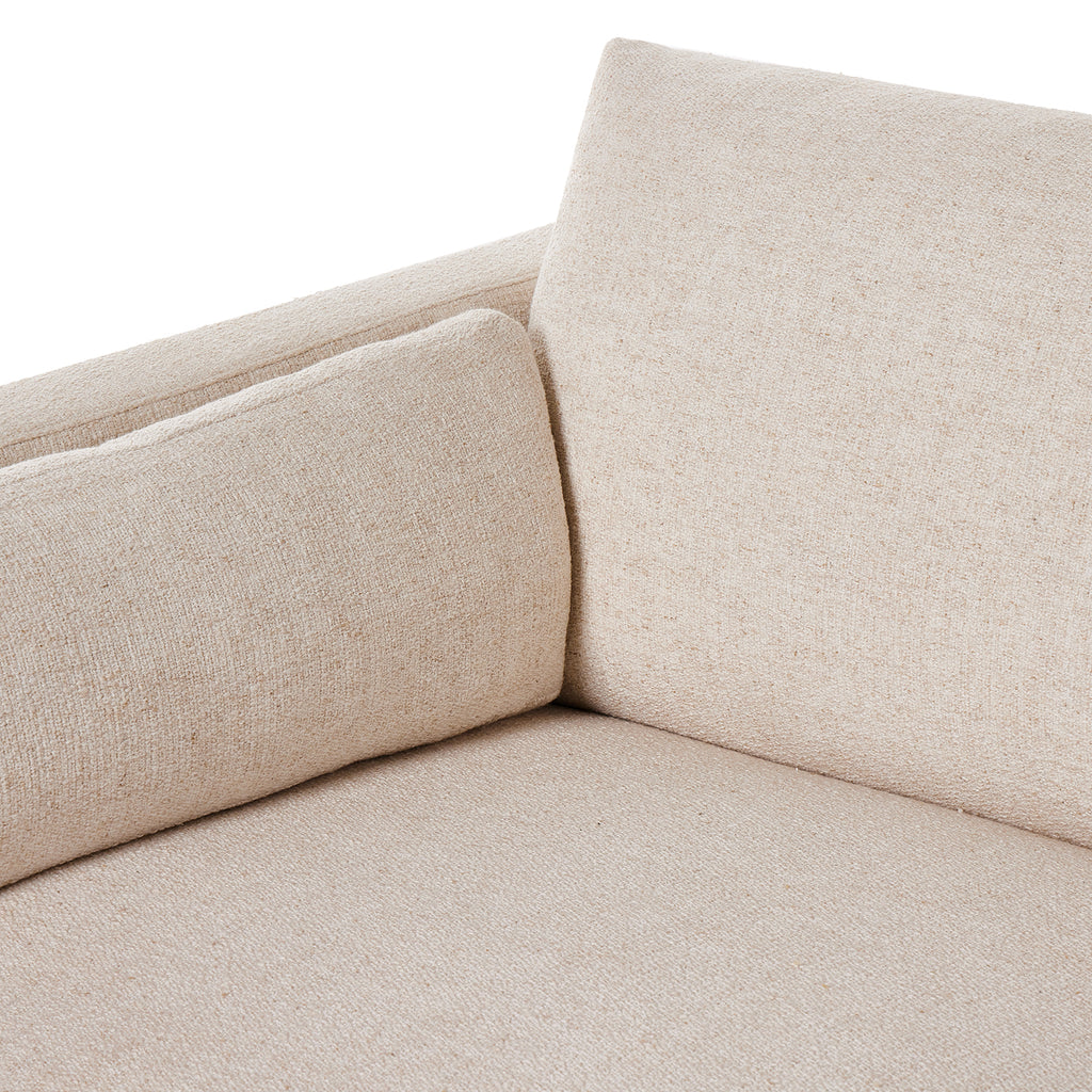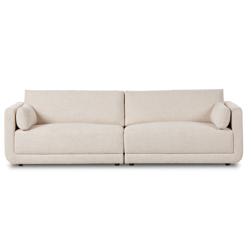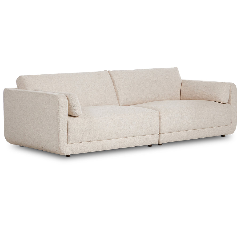 An elevated take on the modular sectional. This new collection features clean lines with loose back and arm cushions. A smooth linear base is fully upholstered and wraps up the arms for a shelter effect.