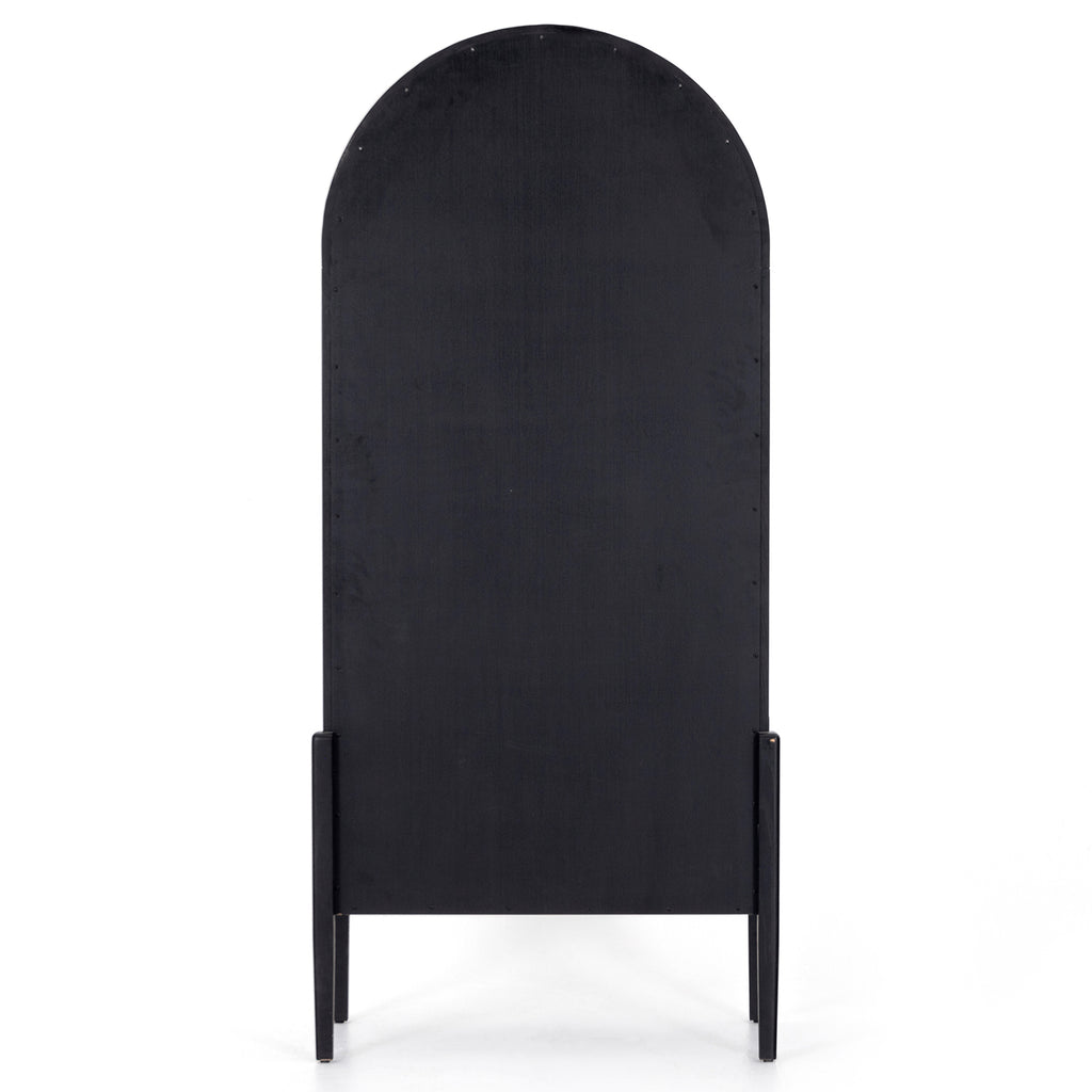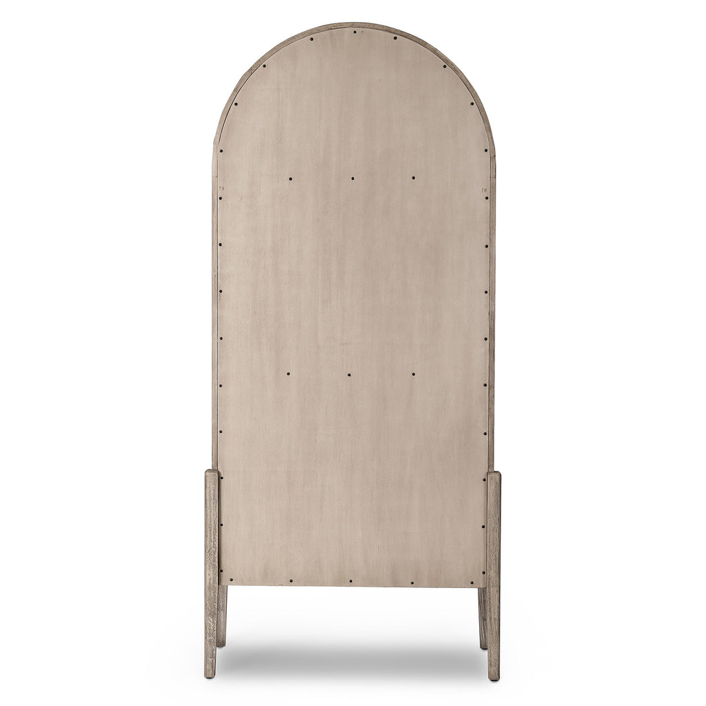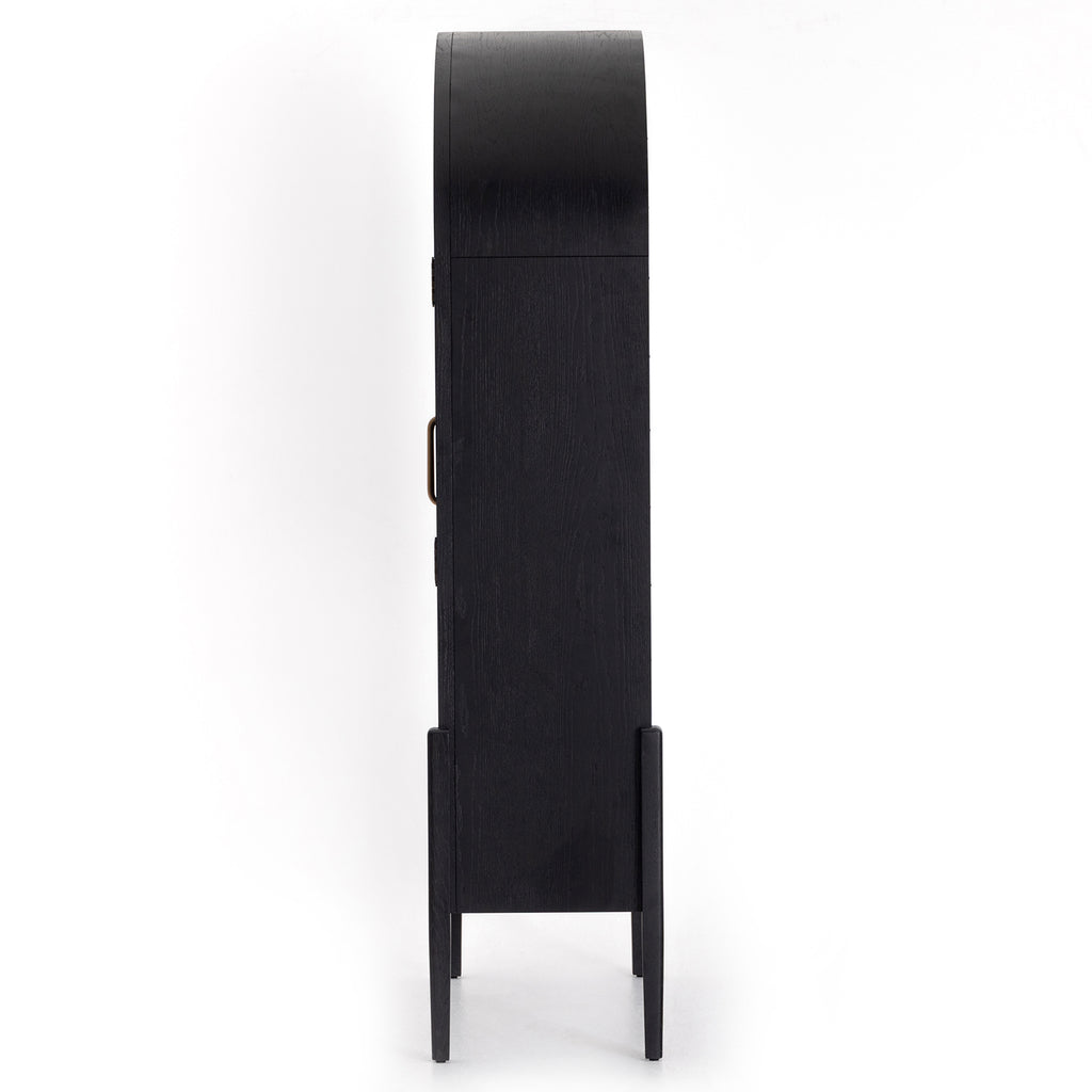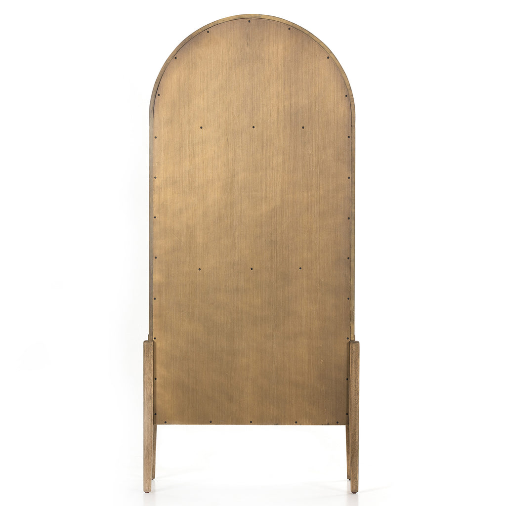 Store it in style. Beautifully shaped cabinetry of solid oak features spacious interior shelving and clear glass front, ready for displaying favorite books, photos and treasures.