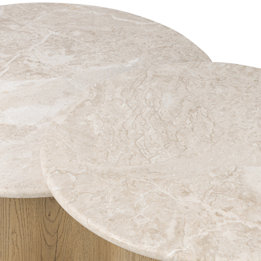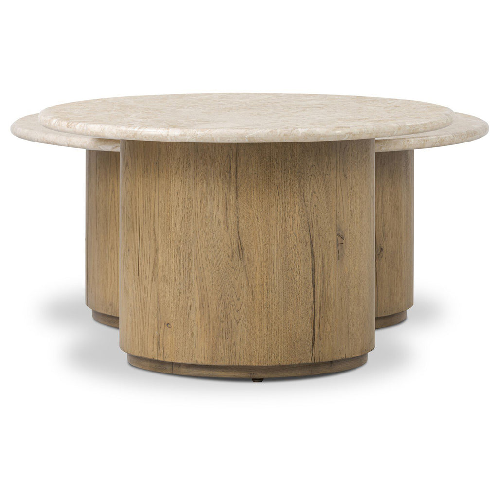 Work shape into your living space with a beautifully contoured coffee table of light wood and taupe marble, featuring two tiers of surface space — perfect for entertaining. Quarried directly from the earth, marble and natural stone vary in veining, texture and color. Whether polished, sandblasted or hand-carved, each is valued for its unique pattern and natural beauty.
