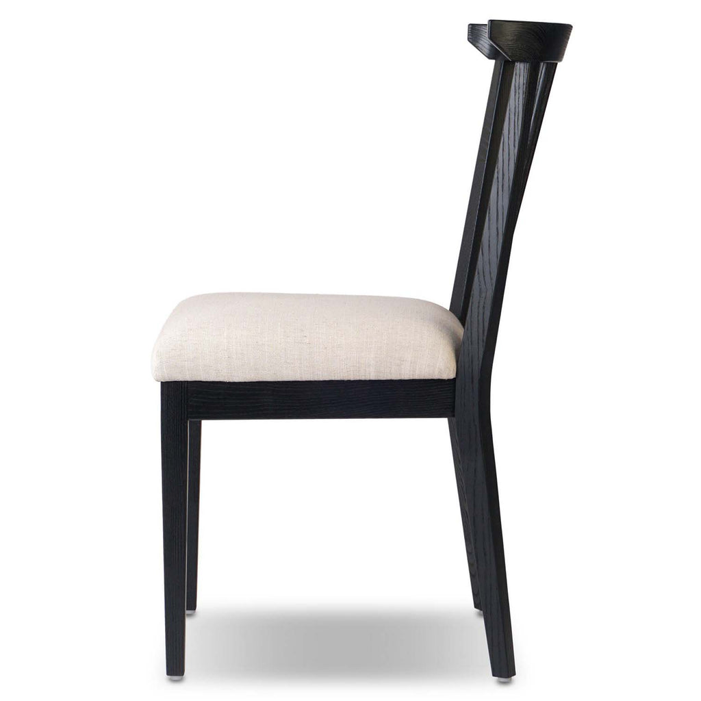A linear dining style inspired by Japanese tea houses, crafted from natural ash. Designed for comfort, a thick cushion seat is upholstered in a casual poly-linen blend.