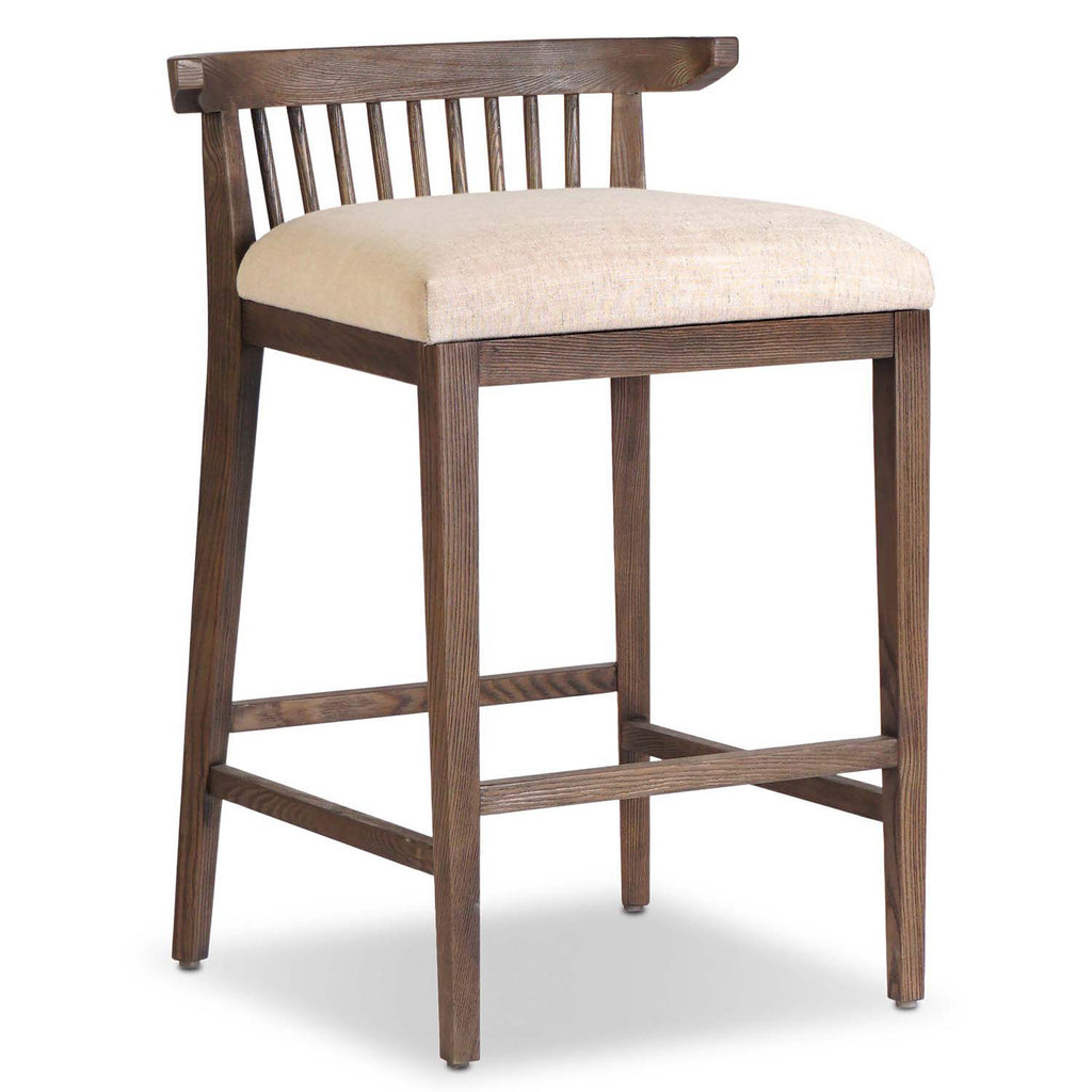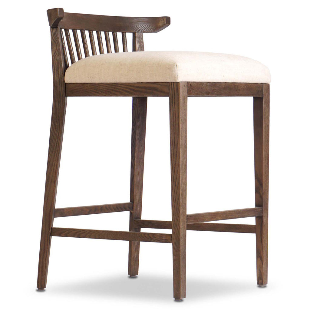 A low, linear stool inspired by Japanese tea houses, crafted from natural ash. Designed for comfort, a thick cushion seat is upholstered in a casual poly-linen blend.