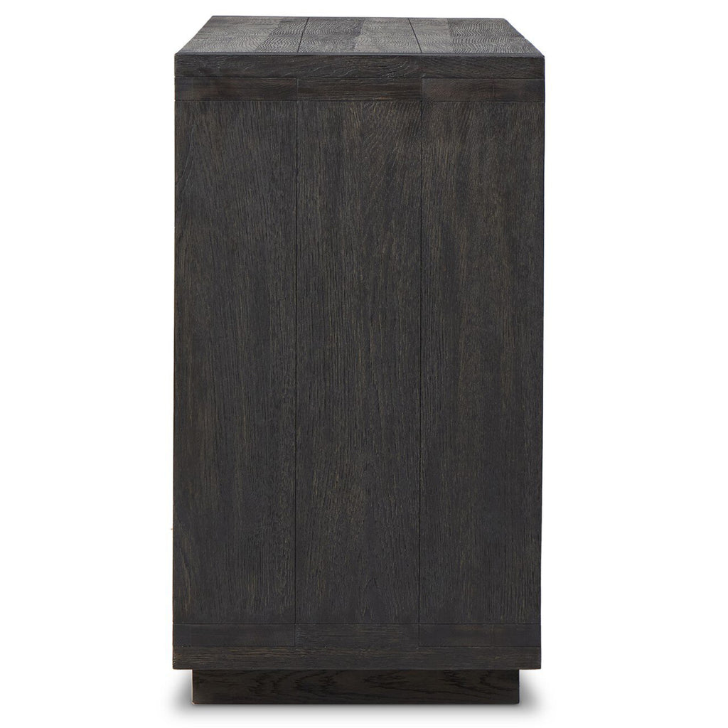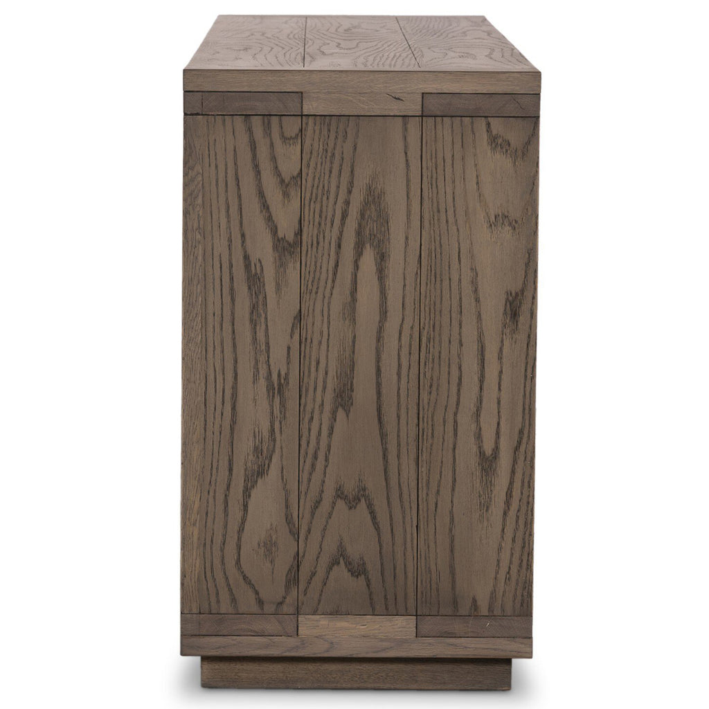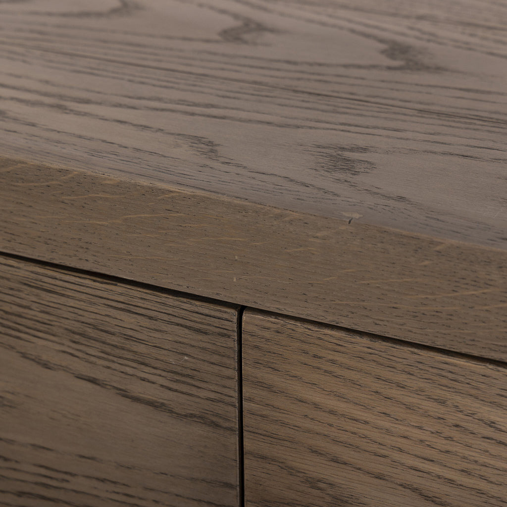 Worn oak shapes a streamlined box-style dresser, with lap joint corners for a detail-driven touch.