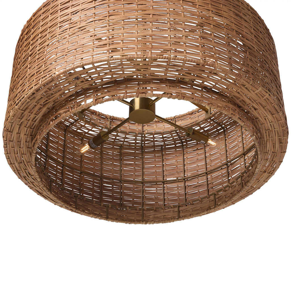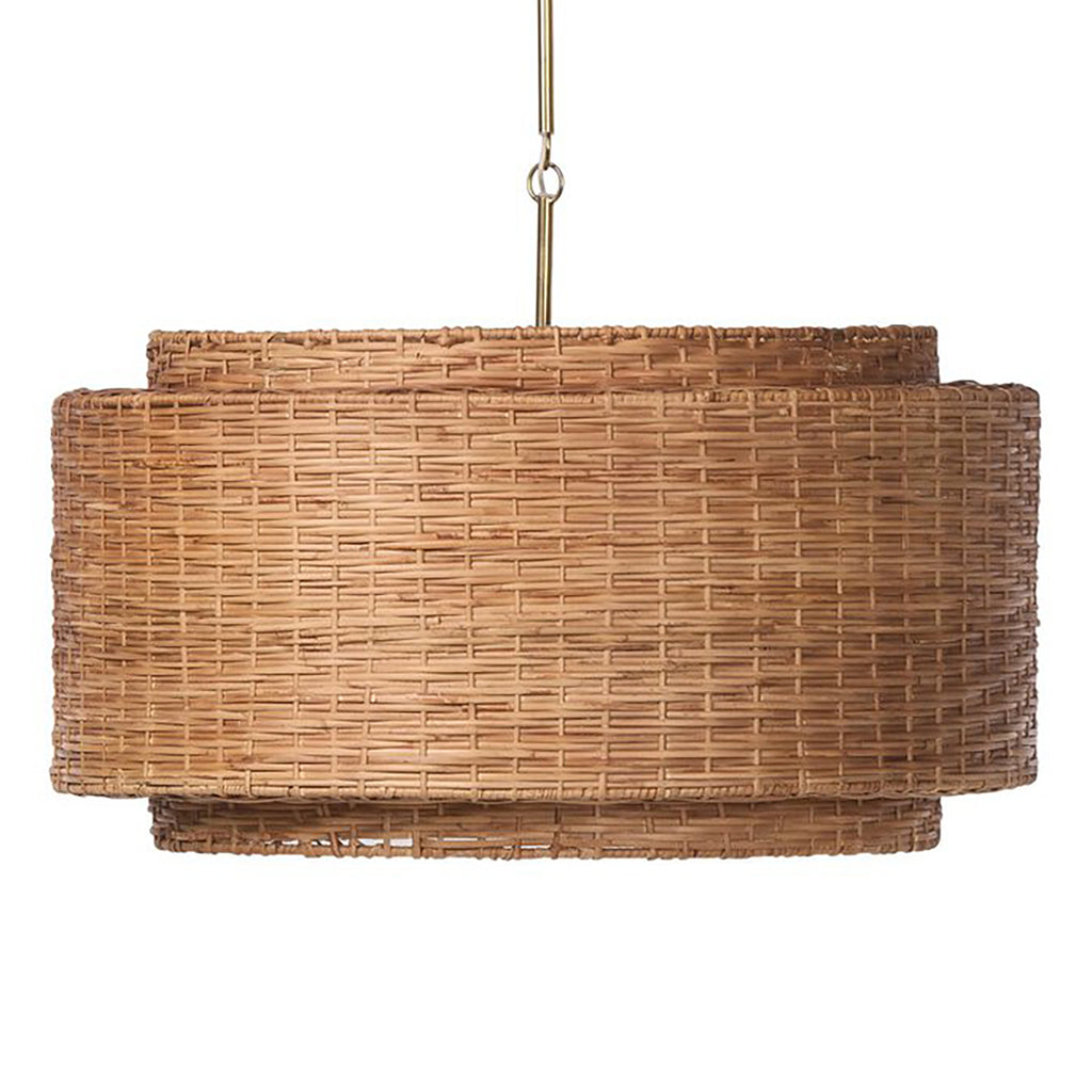 Add a touch of texture with this overscaled pendant of natural woven cane. A tiered three-light design to craft a warm light in any space.