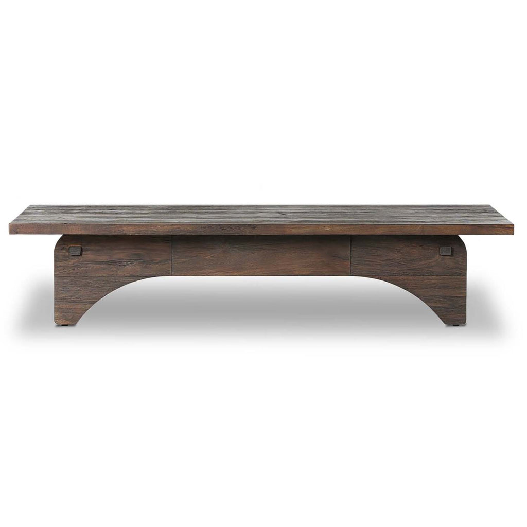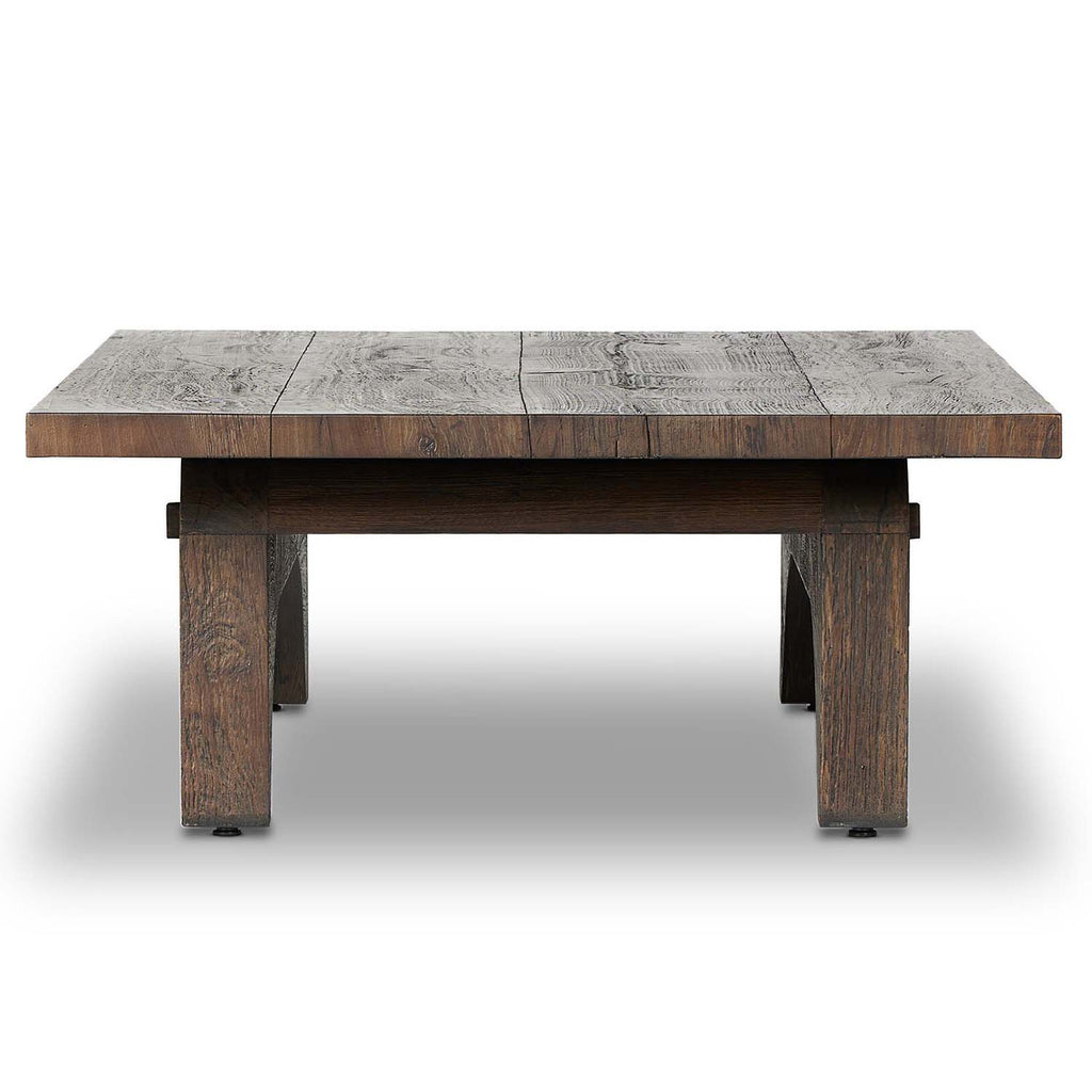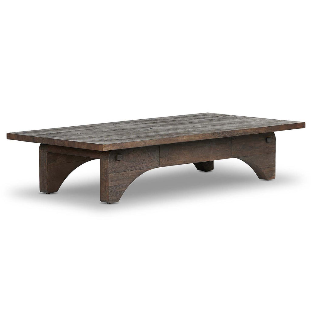Smoked alder shapes a character-rich coffee table with Wabi Sabi vibes. Joinery pulls through stretchers, with groove detailing on legs, for an artisan feel.
