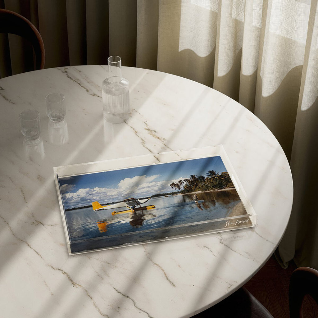 A specially selected work from the late influential photographer Slim Aarons, printed directly on an acrylic tray that's crafted in-house by Four Hands Art Studio. Handmade in Austin, Texas, each piece includes a certificate of authenticity commemorating the partnership between Slim Aarons, Getty Images Gallery and Four Hands Art Studio. Photo courtesy of Getty Images.