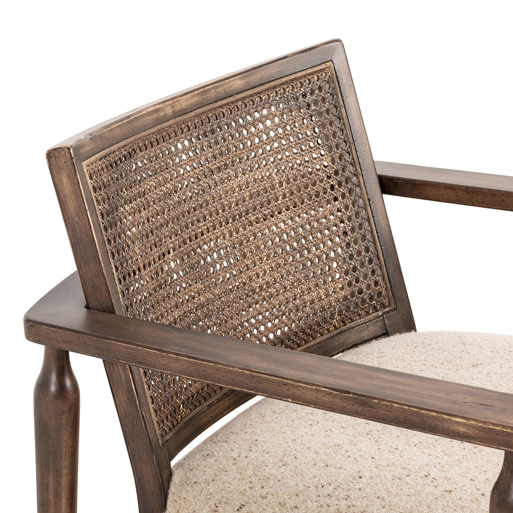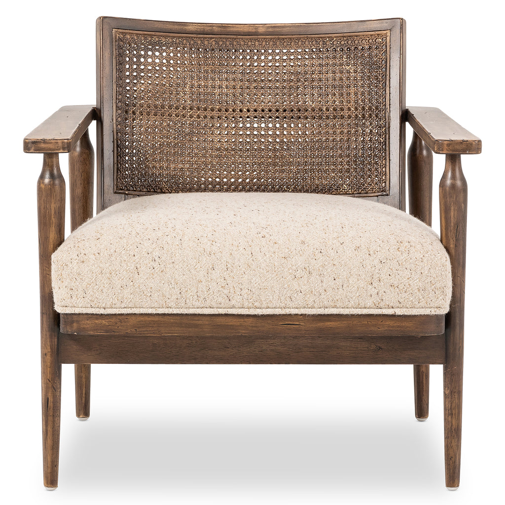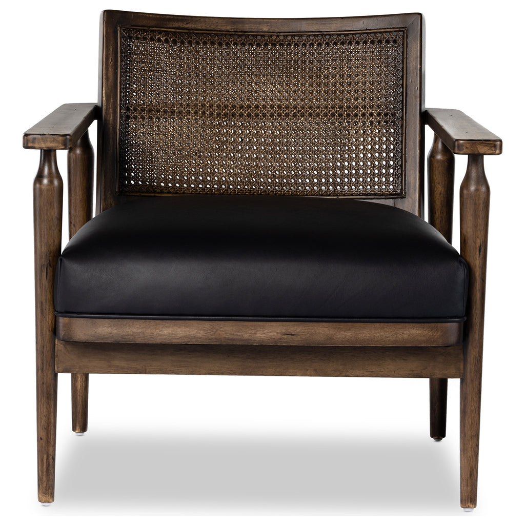Vintage inspiration gives the feel of rich heritage. A warm wood frame in an aged finish supports a cane back and worn Italian leather seat, for low-profile comfort.