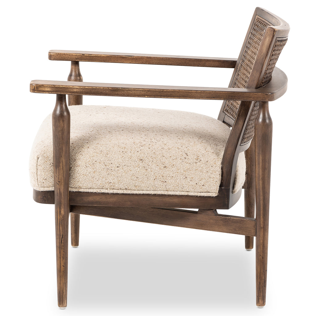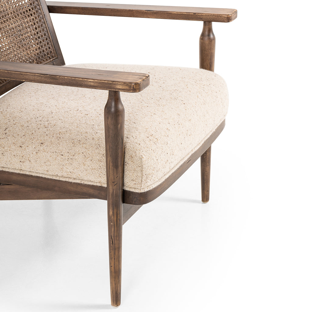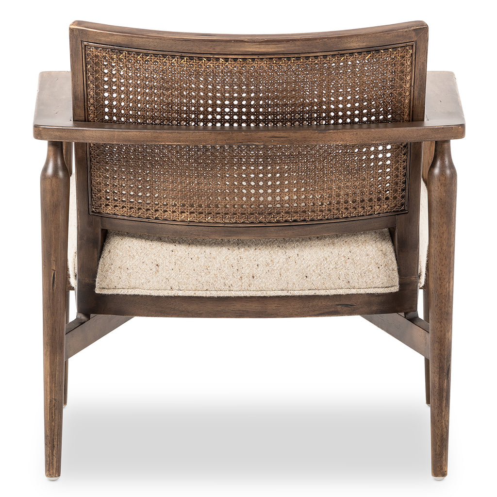 Vintage inspiration gives the feel of rich heritage. A warm wood frame in an aged finish supports a cane back and worn Italian leather seat, for low-profile comfort.