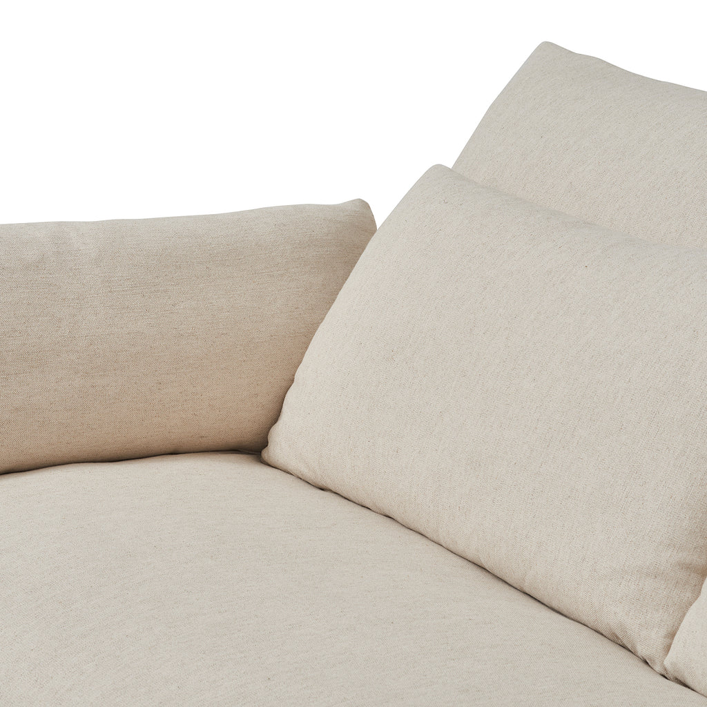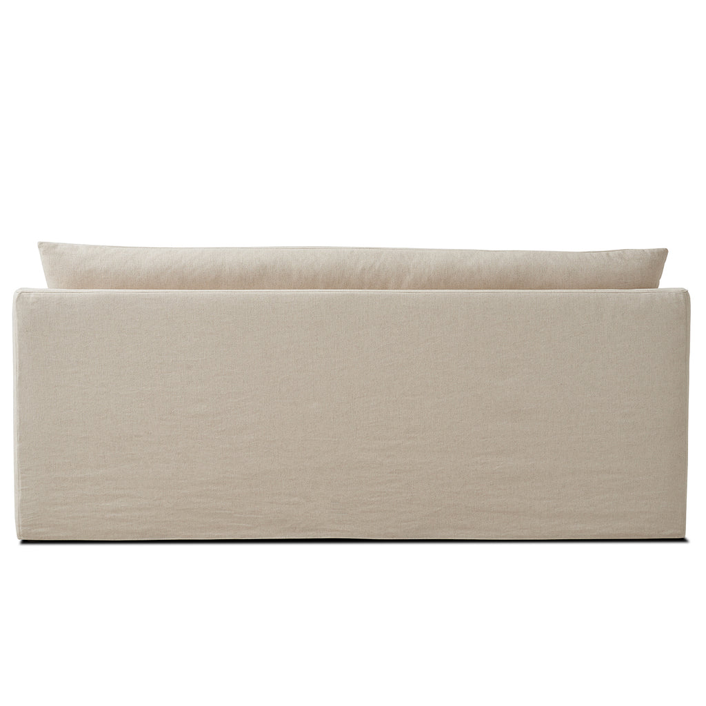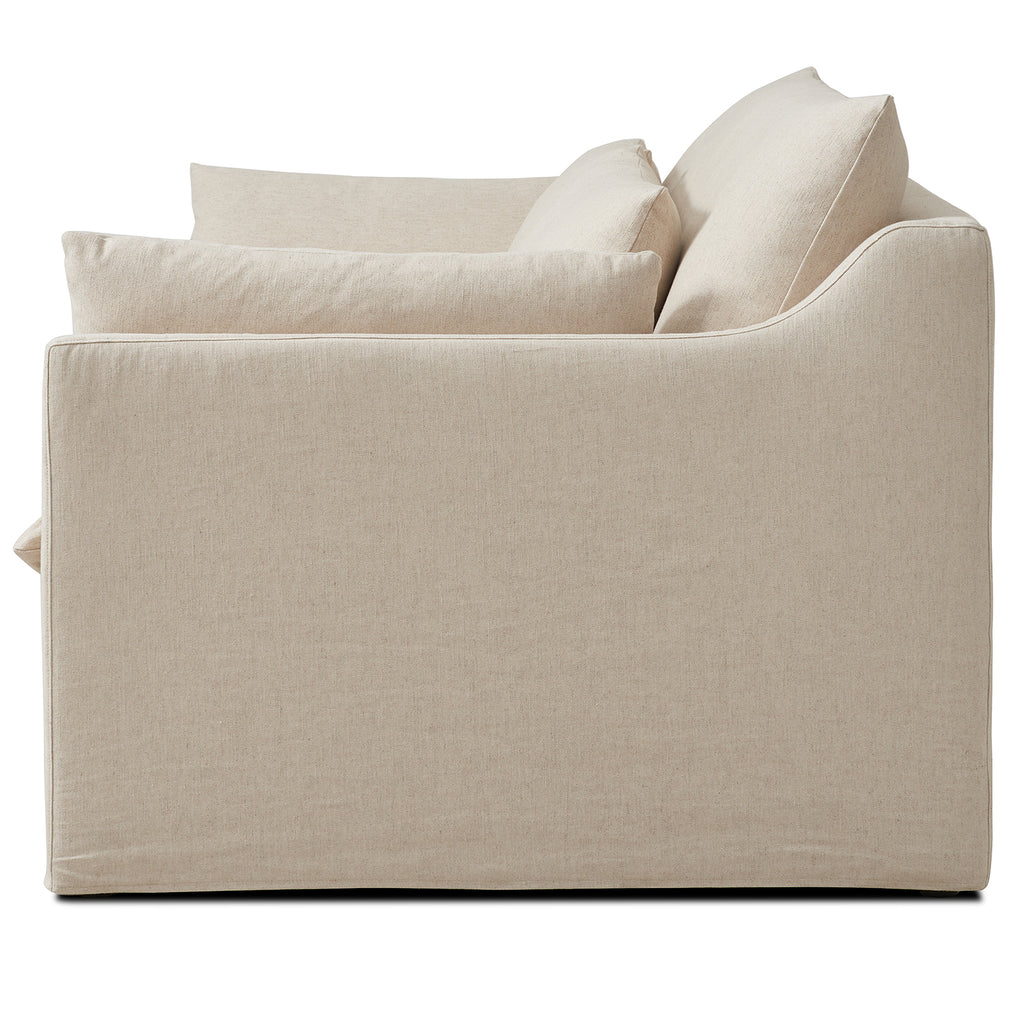 The sink-in feel of this plush sofa will make you never want to leave. Featuring a relaxed, comfortable vibe with a slipcovered frame and knife-edge cushioning. Designed with a deep, higher seat height and big supportive back pillows. Upholstered in cotton/linen blend.