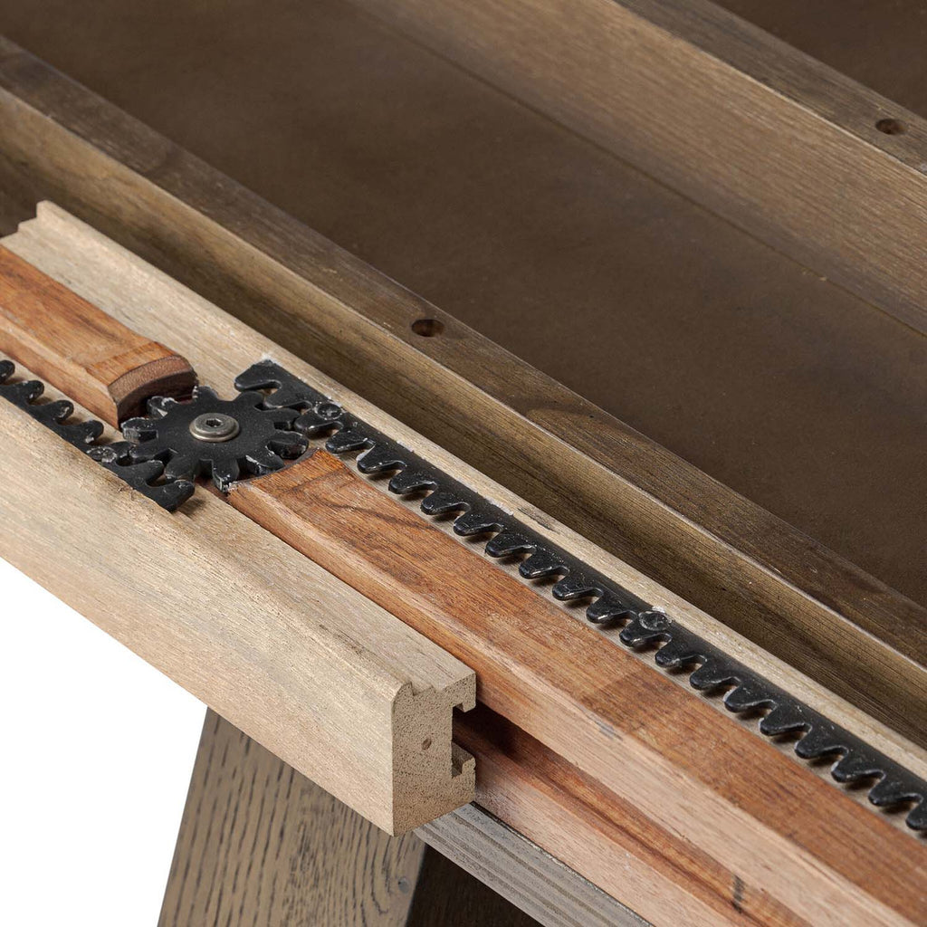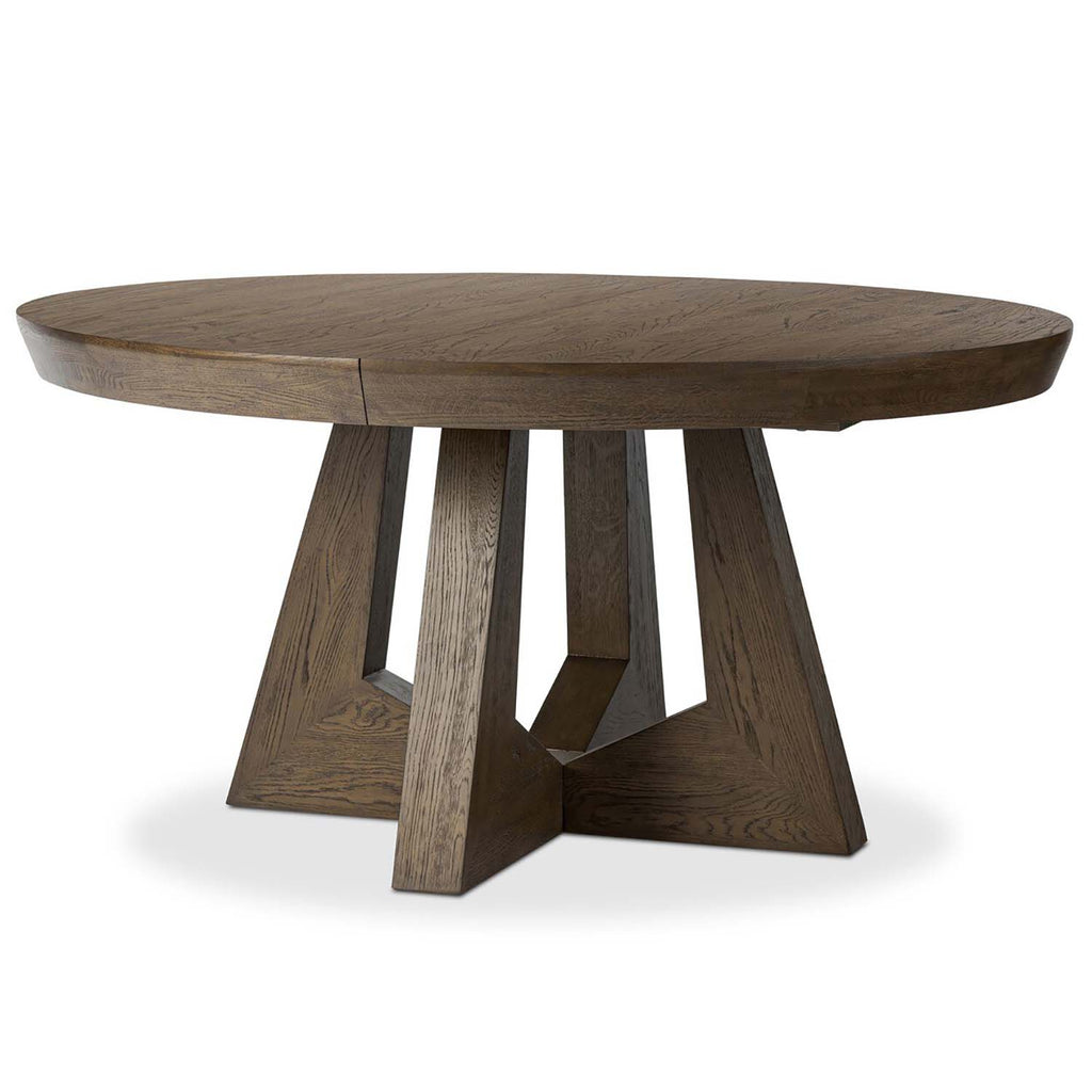Sculptural angles define this expansive oak dining table, as angled cutouts play up a tapered base and top. Expandable design includes two leaves, easily extending from 77in to 94in, for intimate gatherings and dinner parties alike.