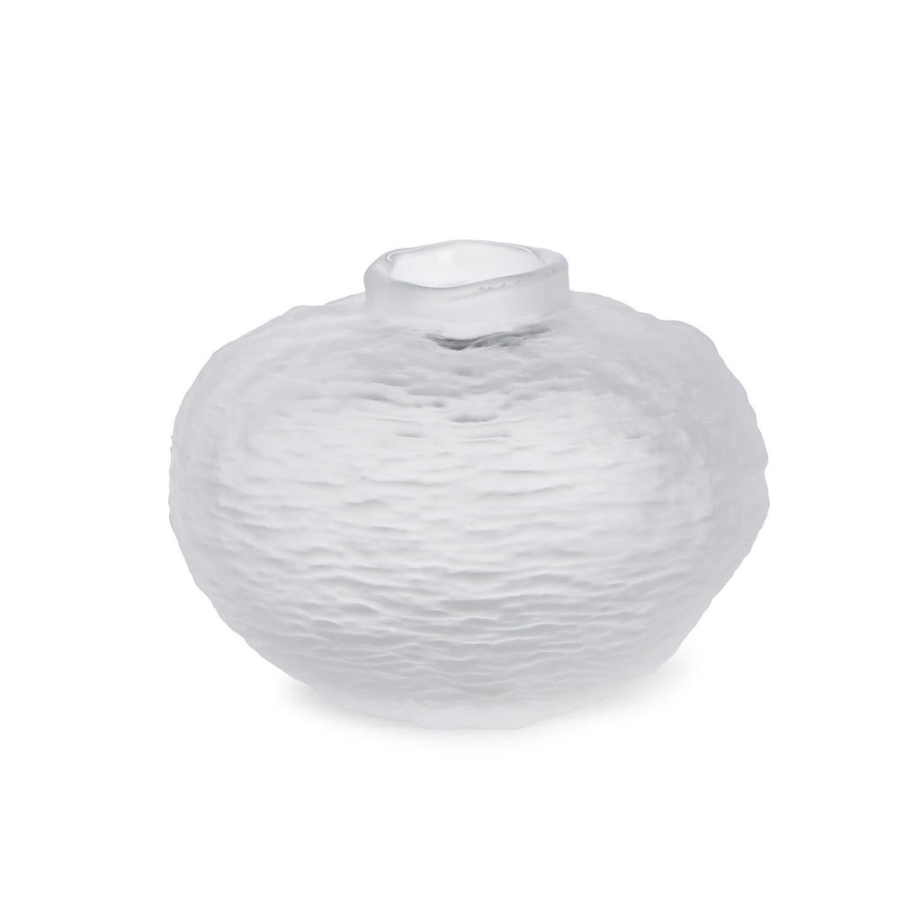 The delicate ripples in the glass creates a mesmerizing effect, perfect for showcasing your favorite blooms. Crafted by skill glass artisans, each piece enjoys a soft and luxurious frosted surface that reflects lights and its surrounding so elegantly. This vase is the ideal size for a coffee table or dining room centerpiece.