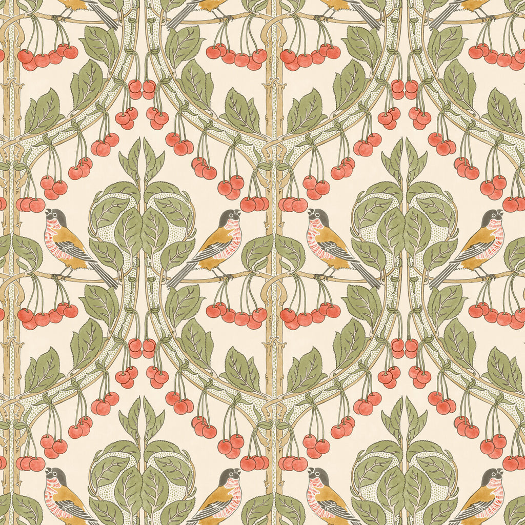 G P & J Baker Birds & Cherries Red/Green Wallpaper